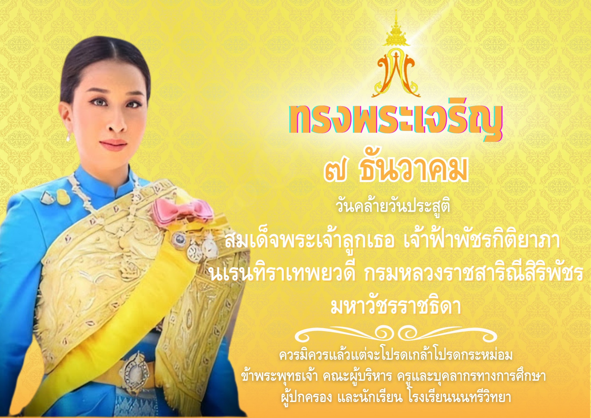 ๗ ธันวาคม ๒๕๖๘ วันคล้ายวันประสูติ สมเด็จพระเจ้าลูกเธอ เจ้าฟ้าพัชรกิติยาภา นเรนทิราเทพยวดี กรมหลวงราชสาริณีสิริพัชร มหาวัชรราชธิดา