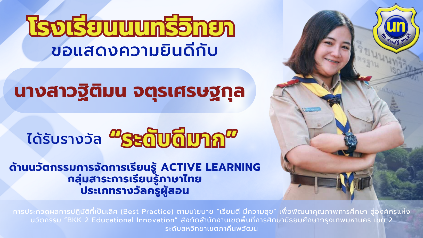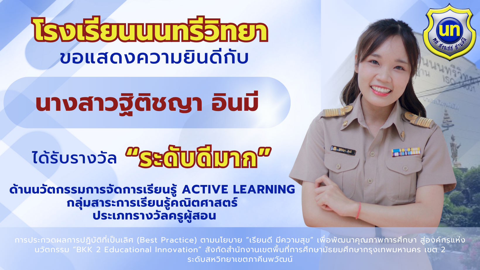 โรงเรียนนนทรีวิทยาขอแสดงความยินดีคุณครูที่ได้รับรางวัลการประกวดการวิจัยในชั้นเรียน ประจำปีงบประมาณ 2568 โรงเรียนนนทรีวิทยา ดังนี้