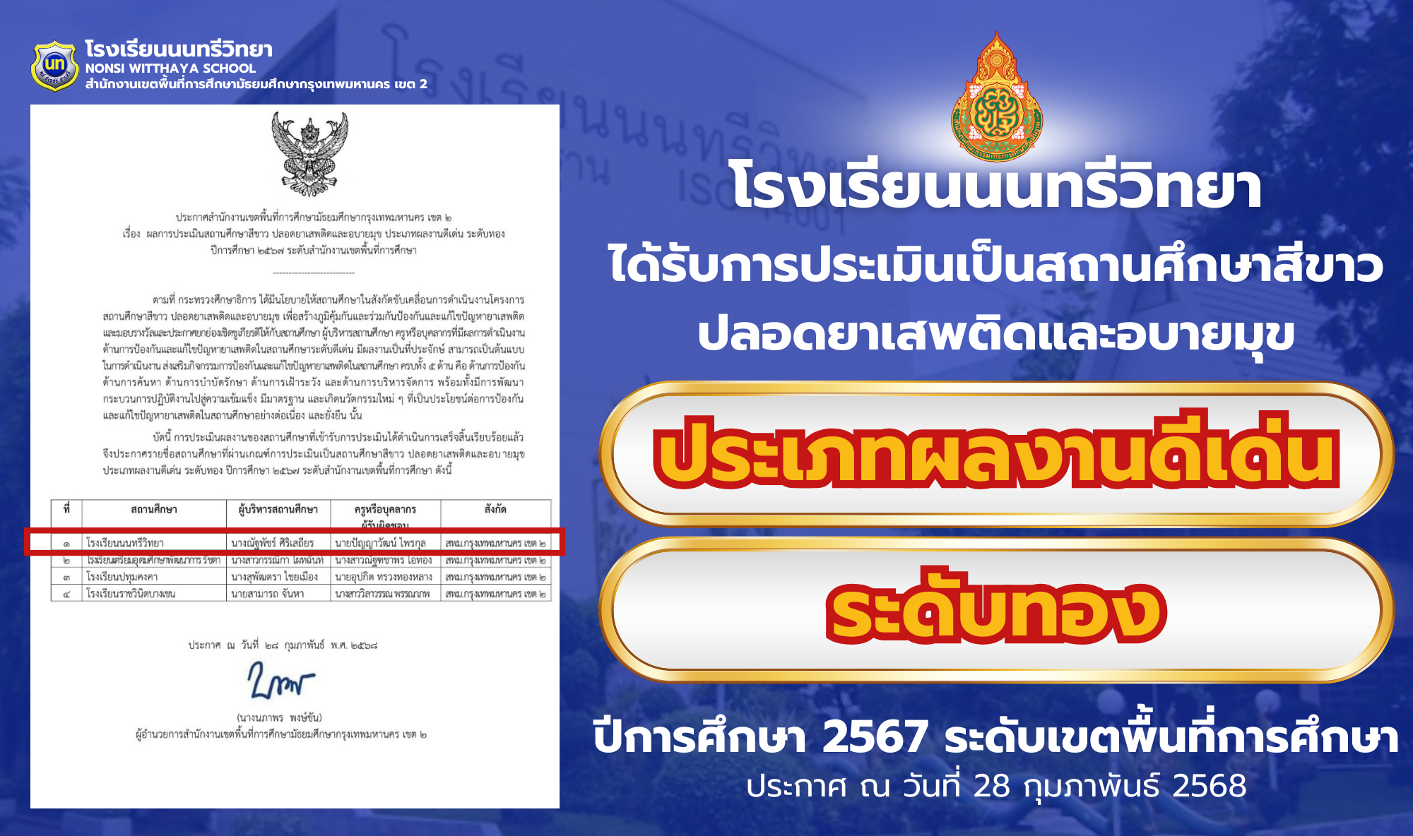 โรงเรียนนนทรีวิทยา ได้รับรางวัล IQA AWARD ประเภทสถานศึกษาขนาดกลาง ปีการศึกษา 2567 ระดับยอดเยี่ยม โดย สำนักงานเขตพื้นที่การศึกษามัธยมศึกษากรุงเทพมหานคร เขต 2