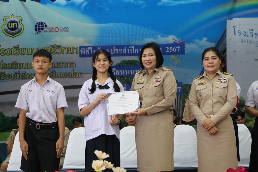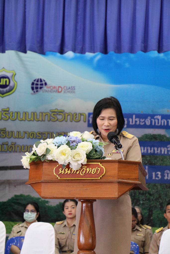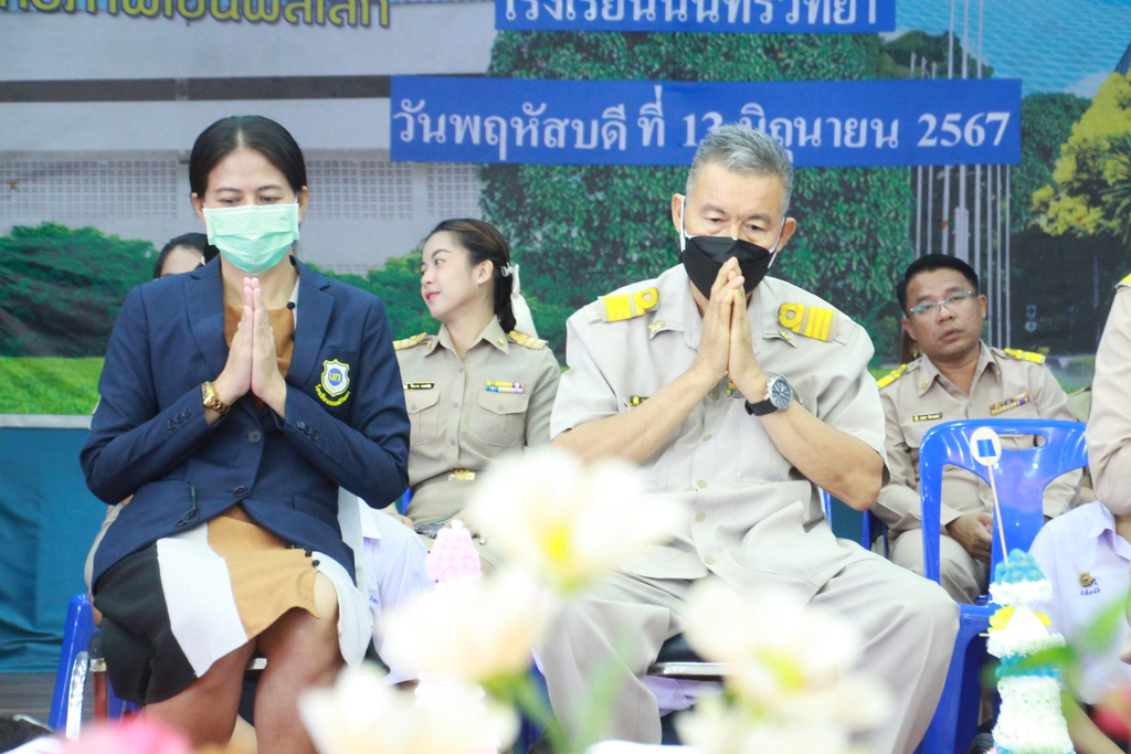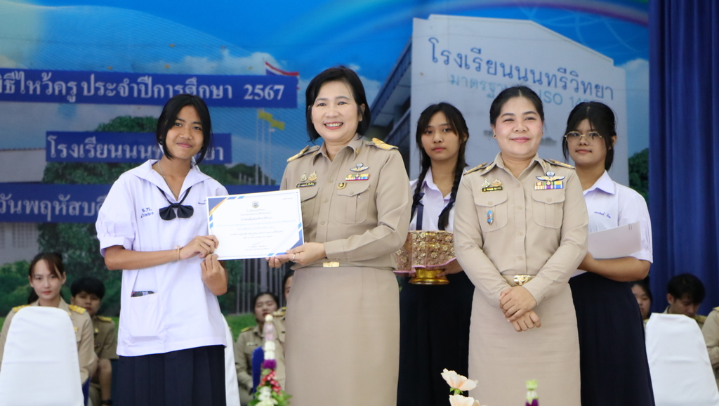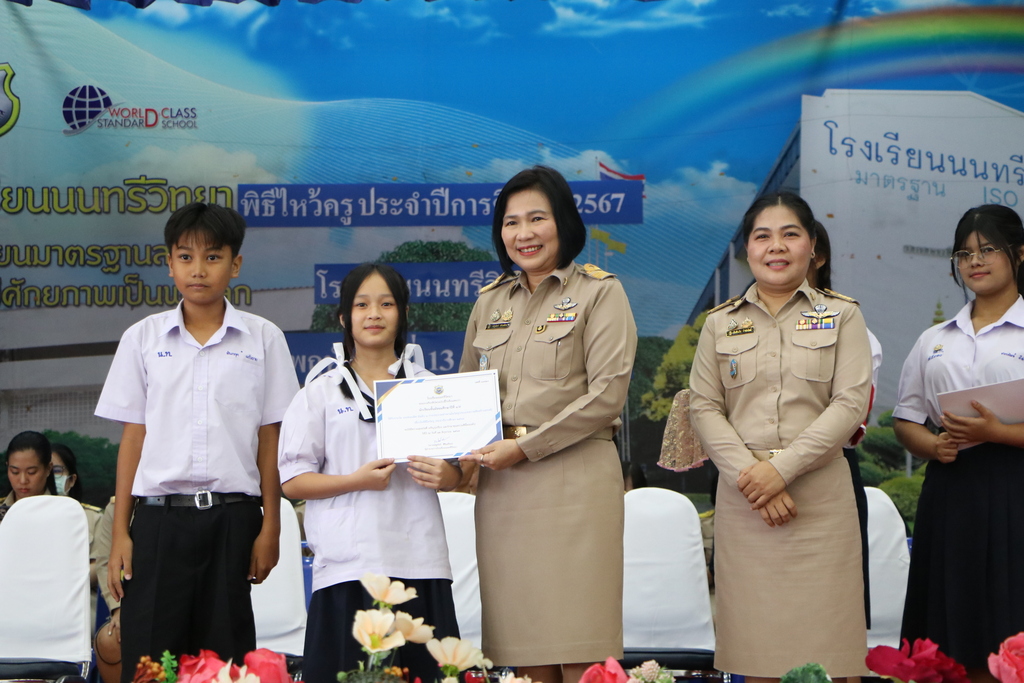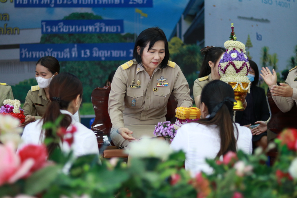 วันพฤหัสบดีที่ 13 มิถุนายน 2567 นางณัฐพัชร์ ศิริเสถียร ผู้อำนวยการโรงเรียนนนทรีวิทยา ได้มอบหมายให้กลุ่มบริหารงานบุคคล(กลุ่มงานกิจการนักเรียน) นำโดย นางสาวนันท์นภัส จำปารัตน์ รองผู้อำนวยการโรงเรียนนนทรีวิทยา ได้จัดพิธีไหว้ครู ประจำปีการศึกษา 2567 ณ ณ หอประชุมสุริยาฉาย โรงเรียนนนทรีวิทยา โดยมี นางณัฐพัชร์ ศิริเสถียร ผู้อำนวยการโรงเรียนนนทรีวิทยาเป็นประธานในพิธี พร้อมด้วยผู้บริหาร ครูและนักเรียนร่วมพิธี โดยมีพิธีมอบพานไหว้ครู คารวะคณะผู้บริหาร ครูทุกท่านโดยตัวแทนนักเรียนและนิสิตฝึกประสบการณ์วิชาชีพครู รวมทั้งการมอบเกียรติบัตรประกวดพานไหว้ครูให้กับห้องเรียนที่ได้รับรางวัล มีวัตถุประสงค์เพื่อการแสดงความกตัญญูกตเวทีและความเคารพต่อครูรวมทั้งสร้างสัมพันธ์ระหว่างครูและนักเรียนให้เกิดความรู้สึกผูกพันใกล้ชิด