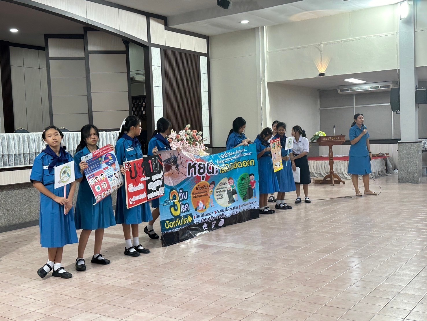 วันที่ 11-14 มิถุนายน 2567 นางณัฐพัชร์ ศิริเสถียร ผู้อำนวยการโรงเรียนนนทรีวิทยา ได้มอบหมายให้กลุ่มบริหารทั่วไป นำโดย นางสาวนันท์นภัส จำปารัตน์ รองผู้อำนวยการโรงเรียนนนทรีวิทยา จัดกิจกรรมรณรงค์ป้องกันโรคไข้เลือดออก เนื่องในวันที่ 15 มิถุนายนของทุกปีเป็นวันไข้เลือดออกอาเซียน ณ บริเวณพื้นที่ต่าง ๆ ภายในโรงเรียนนนทรีวิทยา โดยมีกลุ่มงานอนามัยของโรงเรียนนนทรีวิทยาเป็นผู้ดำเนินการ ประกอบไปด้วยกิจกรรมประชาสัมพันธ์ให้ความรู้และกิจกรรมกำจัดแหล่งน้ำขังอันเป็นแหล่งเพาะพันธุ์ลูกน้ำยุงลาย โดยมีวัตถุประสงค์เพื่อร่วมกันรณรงค์ใส่ใจดูแลสิ่งแวดล้อม ไม่ให้เป็นแหล่งเพาะพันธุ์ยุงลาย และกำจัดลูกน้ำยุงลายซึ่งเป็นต้นเหตุของโรคไข้เลือดออกให้กับนักเรียน