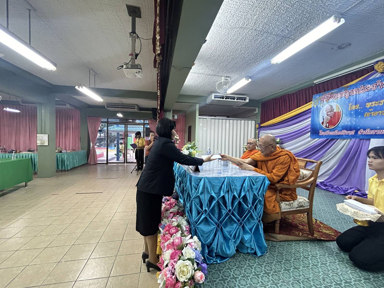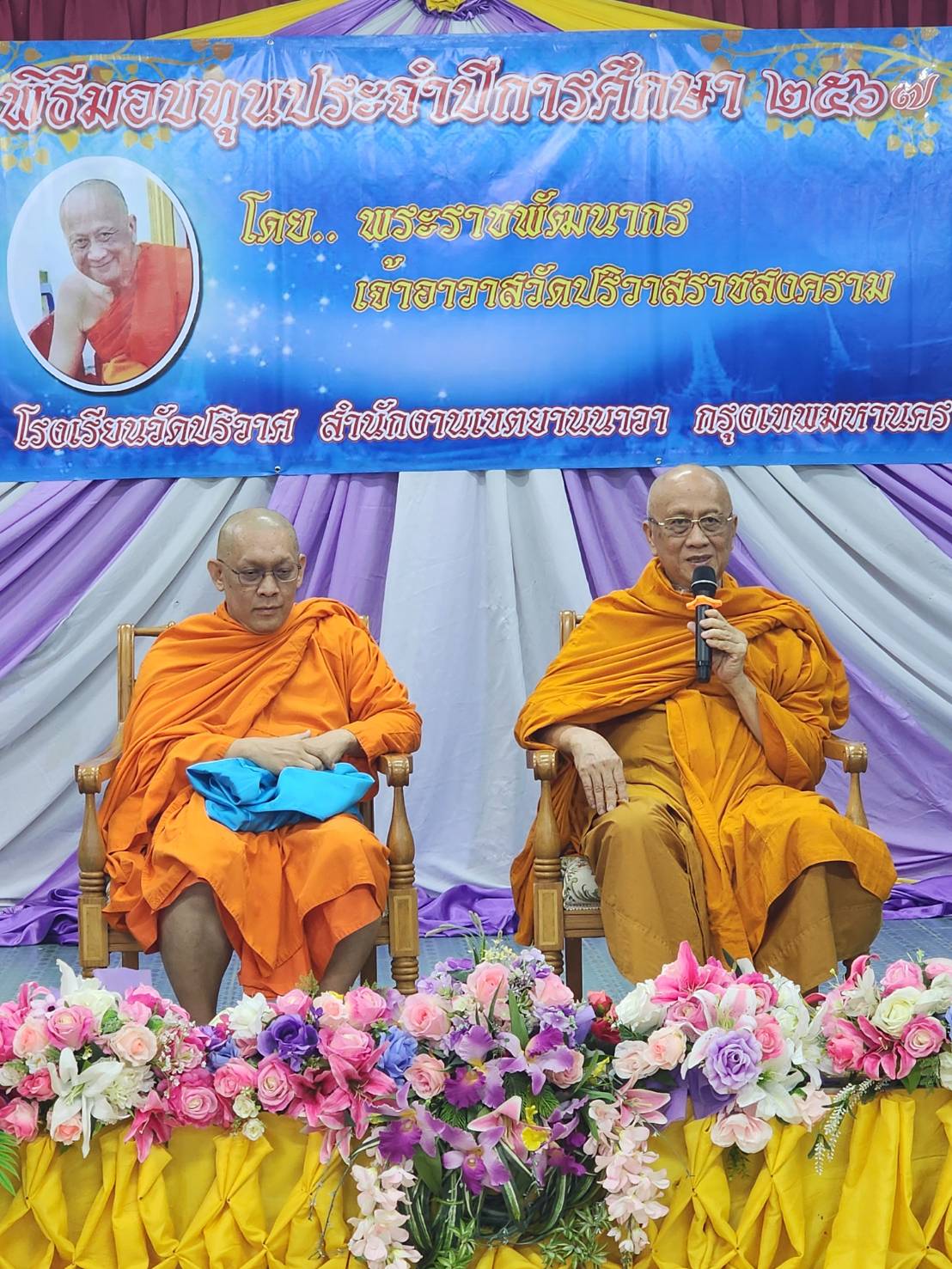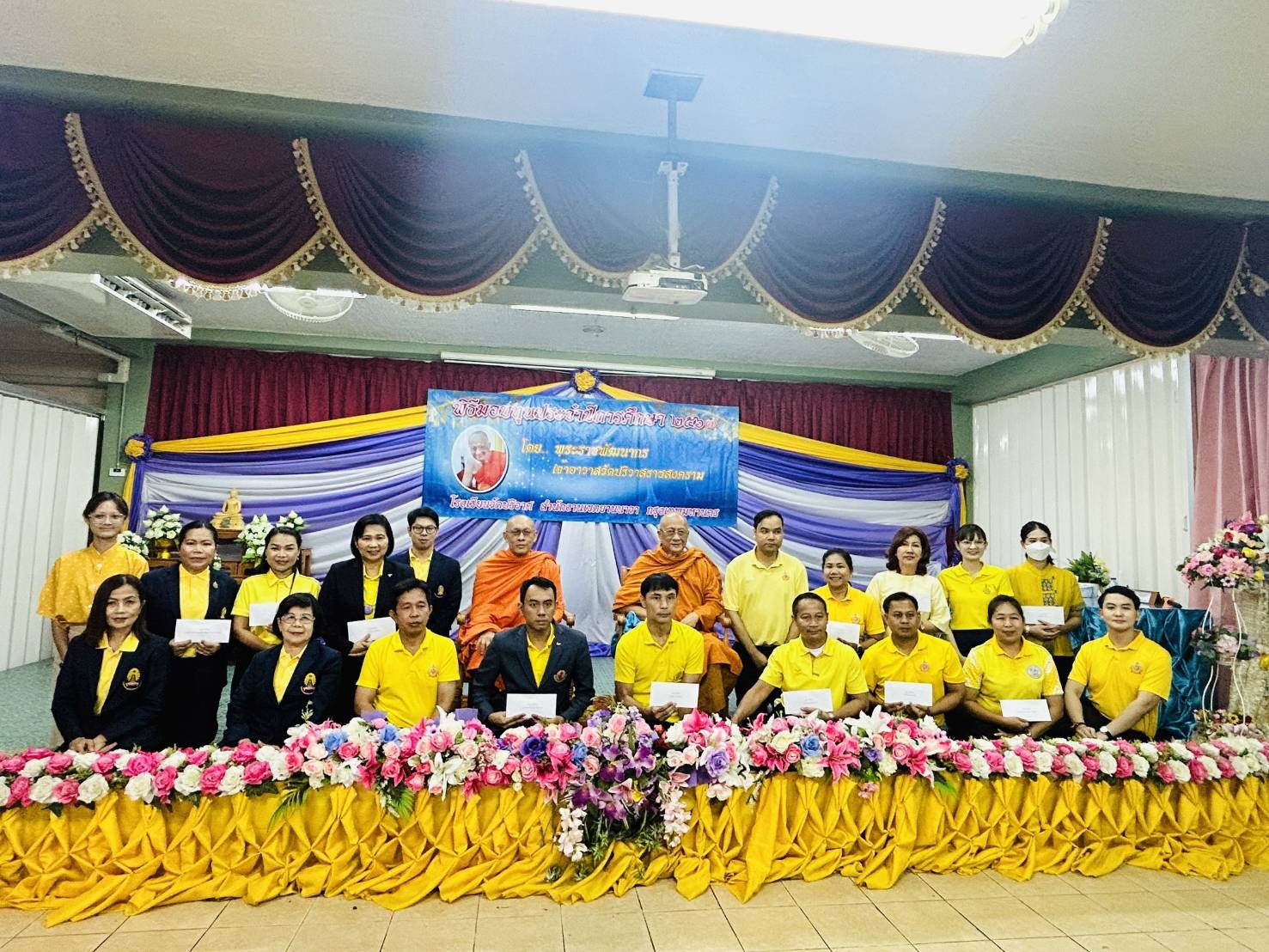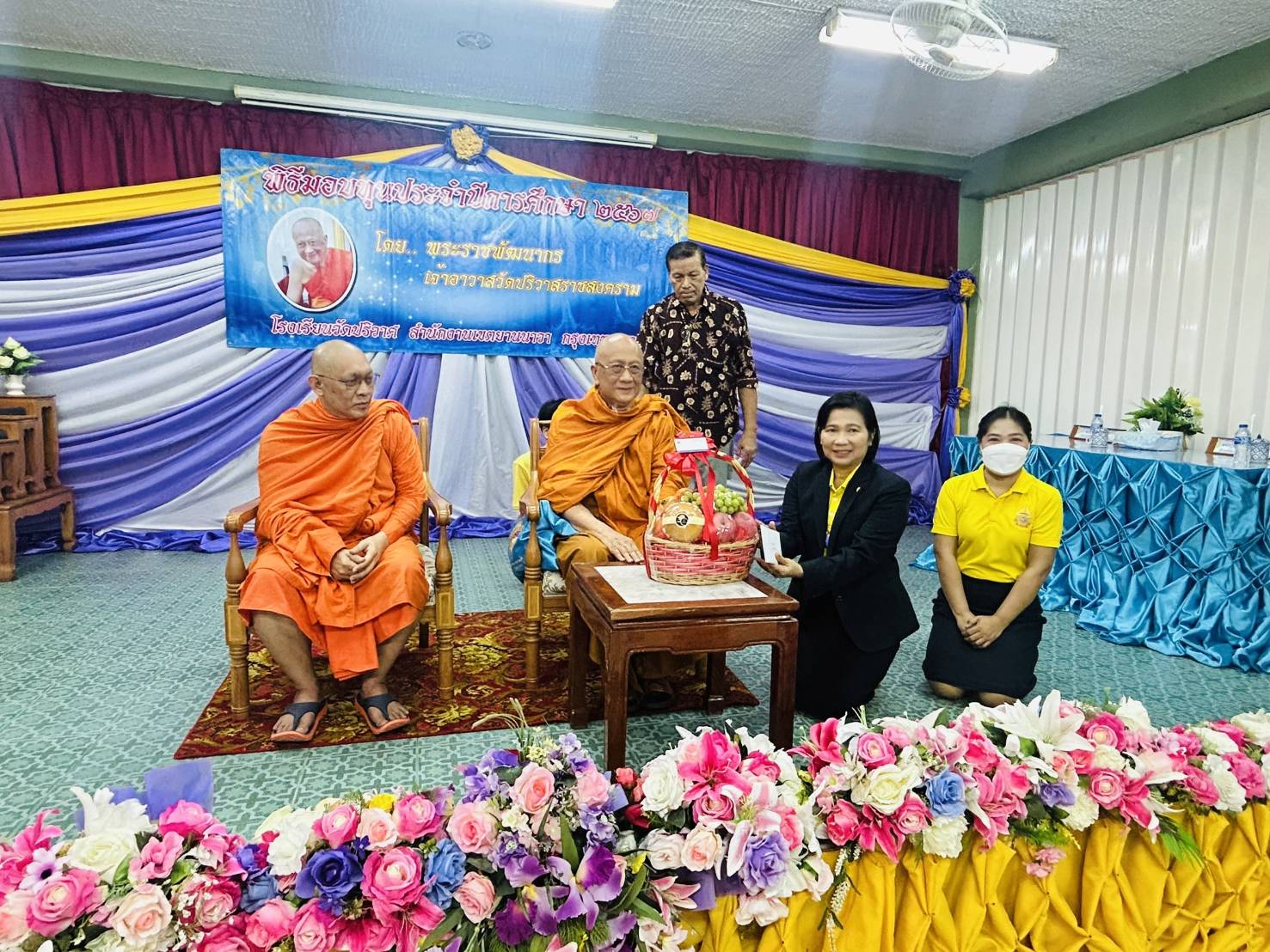 วันจันทร์ที่ 24 มิถุนายน 2567 นางณัฐพัชร์ ศิริเสถียร ผู้อำนวยการโรงเรียนนนทรีวิทยา พร้อมด้วยคณะผู้บริหารสถานศึกษา เข้ารับมอบทุนการศึกษาจากพระราชพัฒนากรเจ้าอาวาสวัดปริวาสราชสงคราม จำนวน 30,000 บาท ณ ห้องประชุมปฐมพร โรงเรียนวัดปริวาศ เขตยานนาวา กรุงเทพมหานคร โดยมีวัตถุประสงค์เพื่อสนับสนุนนักเรียนที่ขาดแคลนทุนทรัพย์ในการศึกษาของโรงเรียนนนทรีวิทยา