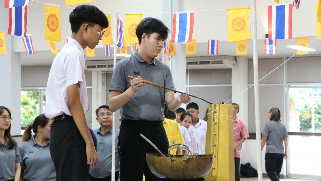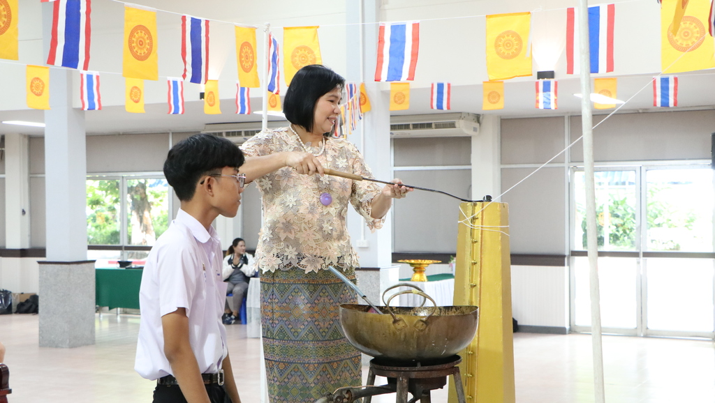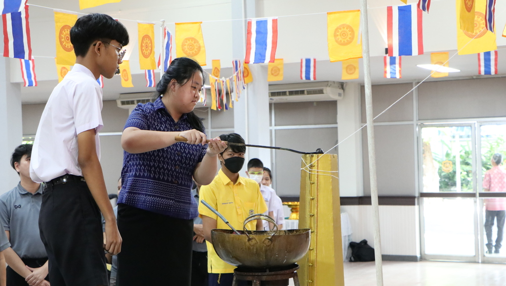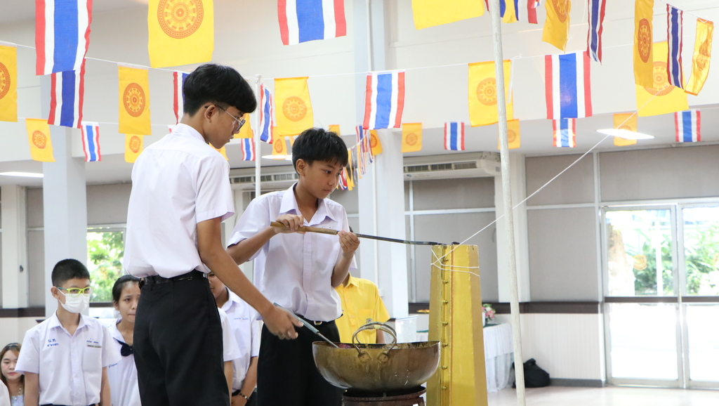 วันพุธที่ 17 กรกฎาคม พ.ศ.2567 นางณัฐพัชร์ ศิริเสถียร ผู้อำนวยการโรงเรียนนนทรีวิทยา ได้มอบหมายให้กลุ่มบริหารงานบุคคล(กลุ่มงานกิจการนักเรียน) นำโดย นางสาวนันท์นภัส จำปารัตน์ รองผู้อำนวยการโรงเรียนนนทรีวิทยา ได้จัดกิจกรรมหล่อเทียนพรรษา ประจำปี 2567 ณ หอประชุมมุนินทร์มนา โรงเรียนนนทรีวิทยา โดยมีนางณัฐพัชร์ ศิริเสถียร ผู้อำนวยการโรงเรียนนนทรีวิทยาเป็นประธานในพิธี ในการนี้ได้นิมนต์คณะพระสงฆ์จากวัดจันทร์นอกนำหล่อเทียนพรรษา โดยวัตถุประสงค์เพื่อถวายเป็นเทียนพรรษาเนื่องในวันอาสาฬหบูชา และวันเข้าพรรษาให้แก่วัดบริเวณใกล้เคียง รวมทั้งเป็นการปลูกฝังคุณธรรม จริยธรรม สืบสานประเพณี วัฒนธรรมไทยอันดีงามทางพระพุทธศาสนาให้แก่นักเรียน