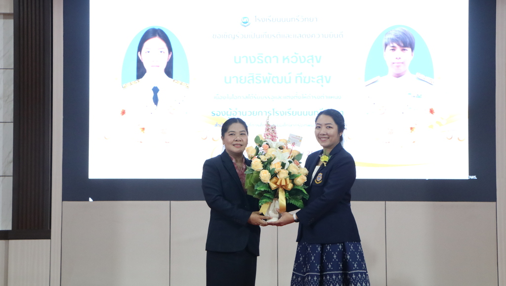วันศุกร์ที่ 26 กรกฎาคม พ.ศ.2567 นางณัฐพัชร์ ศิริเสถียร ผู้อำนวยการโรงเรียนนนทรีวิทยา พร้อมด้วยคณะกรรมการสถานศึกษาขั้นพื้นฐานโรงเรียนนนทรีวิทยา สมาคมผู้ปกครองและครูโรงเรียนนนทรีวิทยา ชมรมครูเก่าโรงเรียนนนทรีวิทยา คณะผู้บริหารและครูโรงเรียนนนทรีวิทยา ให้การต้อนรับและร่วมแสดงความยินดีกับ นางธิดา หวังสุข และ นายสิริพัฒน์ ทีฆะสุข ในโอกาสเข้ารับตำแหน่งรองผู้อำนวยการสถานศึกษา โรงเรียนนนทรีวิทยา ณ หอประชุมมุนินทร์มนา โรงเรียนนนทรีวิทยา โดยมี นายนโรดม นรินทร์รัมย์ ผู้อำนวยการโรงเรียนสารวิทยา และ นายประจักษ์ ประจิมทิศ ผู้อำนวยการโรงเรียนบางกะปิ และคณะกรรมการสถานศึกษาขั้นพื้นฐาน องค์กรภาคีเครือข่ายและคณะครูจากโรงเรียนสารวิทยาและโรงเรียนบางกะปิเข้าร่วมแสดงความยินดี