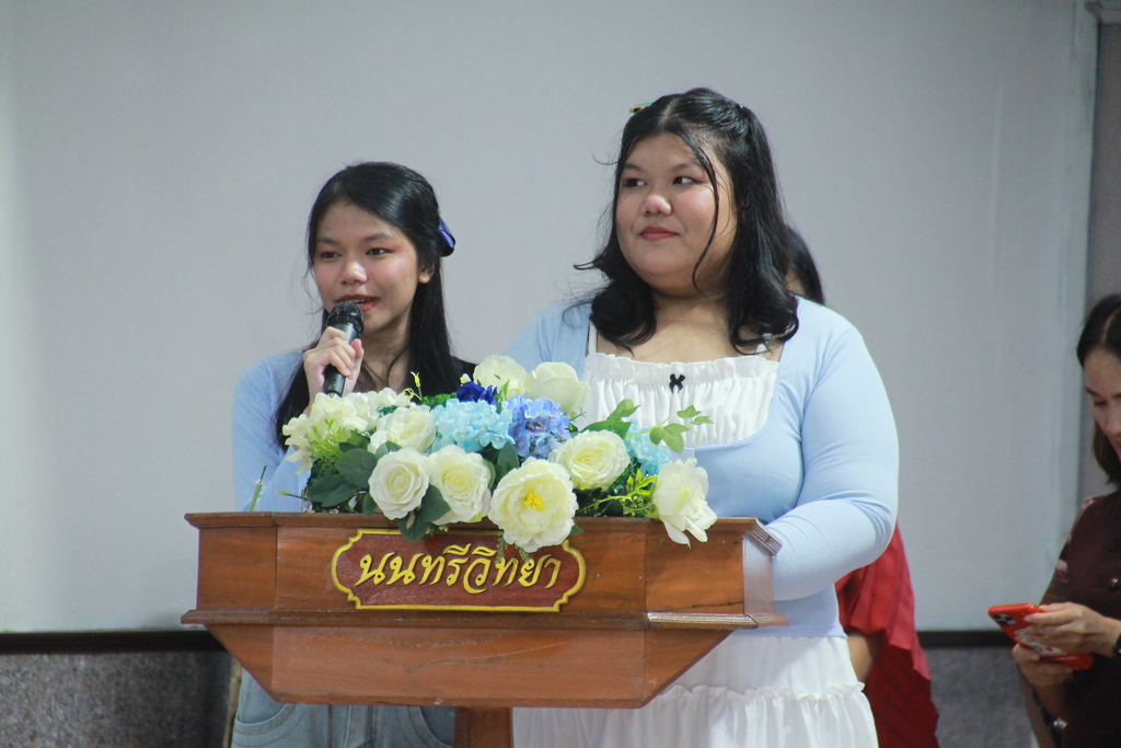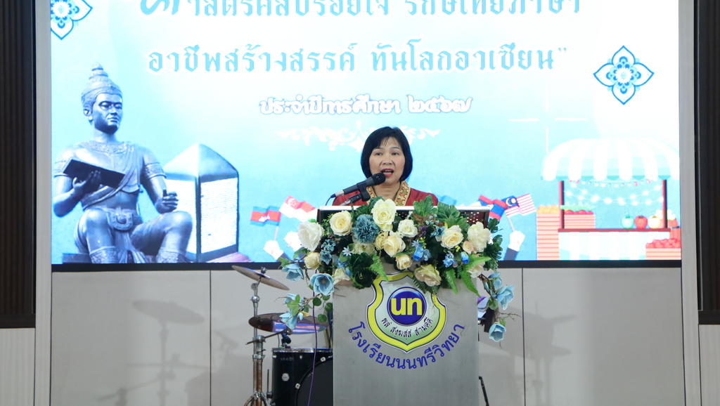 วันพุธที่ 7 สิงหาคม 2566 นางณัฐพัชร์ ศิริเสถียร ผู้อำนวยการโรงเรียนนนทรีวิทยา ได้มอบหมายให้กลุ่มบริหารงานวิชาการ นำโดย นางธิดา หวังสุข รองผู้อำนวยการโรงเรียนนนทรีวิทยา ได้จัดกิจกรรม “ศาสตร์ศิลป์ร้อยใจ รักษ์ไทยภาษา อาชีพสร้างสรรค์ ทันโลกอาเซียน” ประจำปีการศึกษา 2567 ณ หอประชุมมุนินทร์มนา โรงเรียนนนทรีวิทยา โดยมี นางณัฐพัชร์ ศิริเสถียร ผู้อำนวยการโรงเรียนนนทรีวิทยาเป็นประธานในพิธี พร้อมด้วยคณะผู้บริหาร คณะครูและนักเรียน โดยกิจกรรมภายในงานเป็นการบูรณาการร่วมกันระหว่างกลุ่มสาระการเรียนรู้การงานอาชีพ กลุ่มสาระการเรียนรู้ภาษาไทย กลุ่มสาระการเรียนรู้สังคมศึกษา ศาสนาและวัฒนธรรม และกลุ่มสาระภาษาศิลปะ โดยภายในงานประกอบไปด้วยกิจกรรมประกวดร้องเพลงไทยลูกทุ่ง กิจกรรมการประกวดแข่งขันส้มตำลีลา การแสดง Cover Dance และ การแสดงจากวงดนตรีของโรงเรียน กิจกรรมการตอบปัญหาอาเซียน รวมทั้งการเปิดร้านค้าสร้างอาชีพจากนักเรียน โดยมีจุดมุ่งหมายเพื่อให้นักเรียนได้มีการพัฒนาความรู้จากประสบการณ์จริง ส่งเสริมให้นักเรียนได้พัฒนาได้เต็มตามศักยภาพ