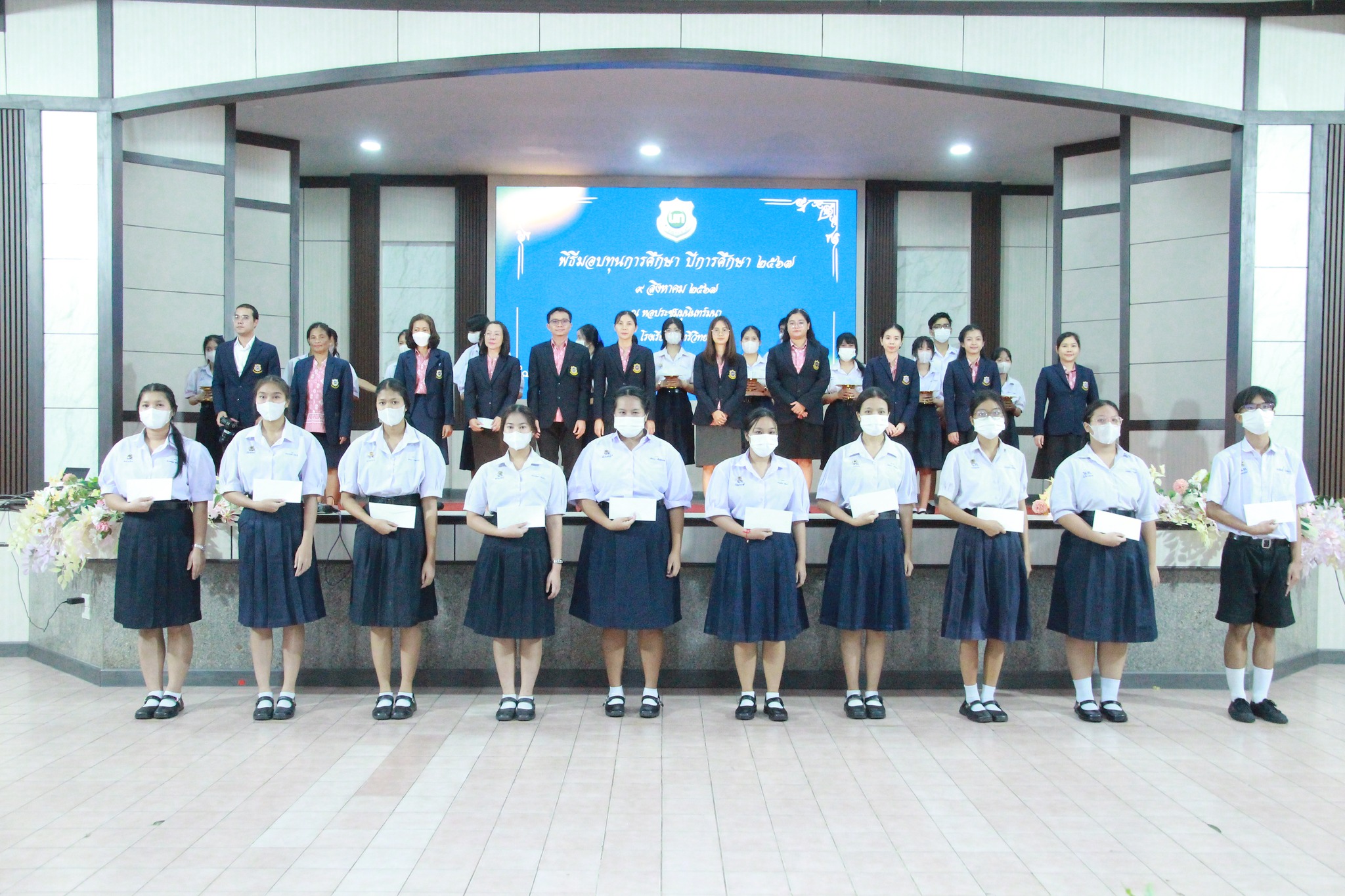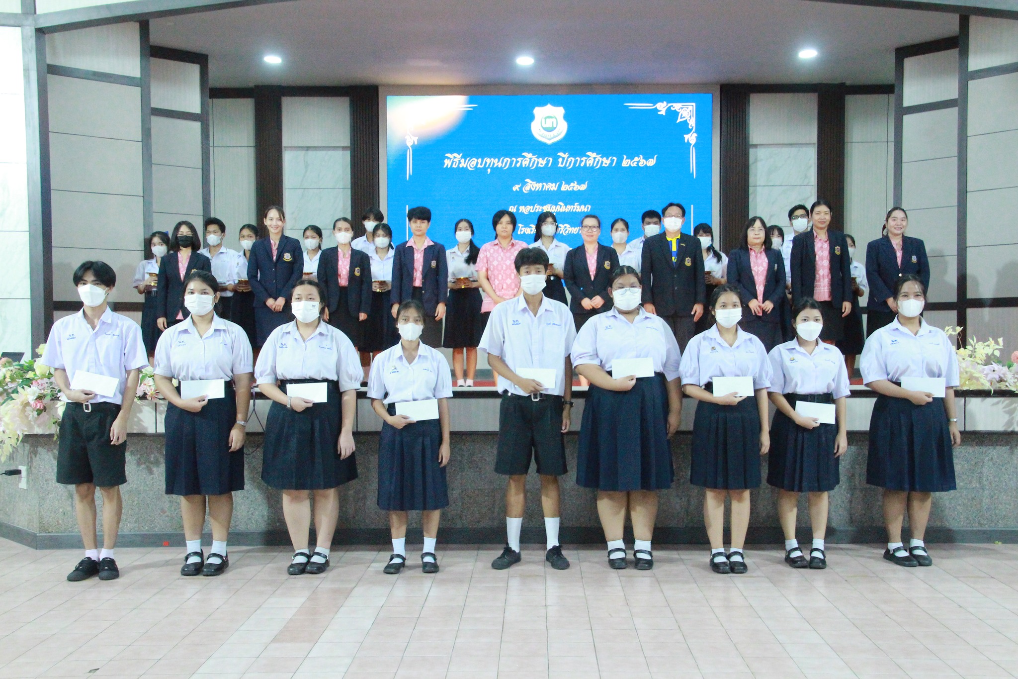 วันศุกร์ที่ 9 สิงหาคม พ.ศ. 2567 นางณัฐพัชร์ ศิริเสถียร ผู้อำนวยการโรงเรียนนนทรีวิทยา ได้มอบหมายให้ กลุ่มบริหารงบประมาณ นำโดย นางสาวนันท์นภัส จำปารัตน์ รองผู้อำนวยการโรงเรียนนนทรีวิทยา ได้จัดพิธีมอบทุนการศึกษา ประจำปีการศึกษา 2567 ณ หอประชุมมุนินทร์มนา โรงเรียนนนทรีวิทยา โดยมีนางณัฐพัชร์ ศิริเสถียร ผู้อำนวยการโรงเรียนนนทรีวิทยาเป็นประธานในพิธี พร้อมด้วยประธานคณะกรรมการสถานศึกษาขั้นพื้นฐานโรงเรียนนนทรีวิทยา คณะผู้บริหาร คณะครูและนักเรียน ซึ่งได้รับความอนุเคราะห์จากหน่วยงาน บริษัท ห้างร้าน สถานประกอบการ องค์กรต่าง ๆ และผู้มีจิตเมตตา จัดสรรทุนการศึกษาประเภทต่าง ๆ ให้นักเรียน รวมทั้งสิ้น 182 ทุน เพื่อเป็นการสนับสนุนให้นักเรียนได้มีทุนทรัพย์ใช้ในการศึกษาต่อไป