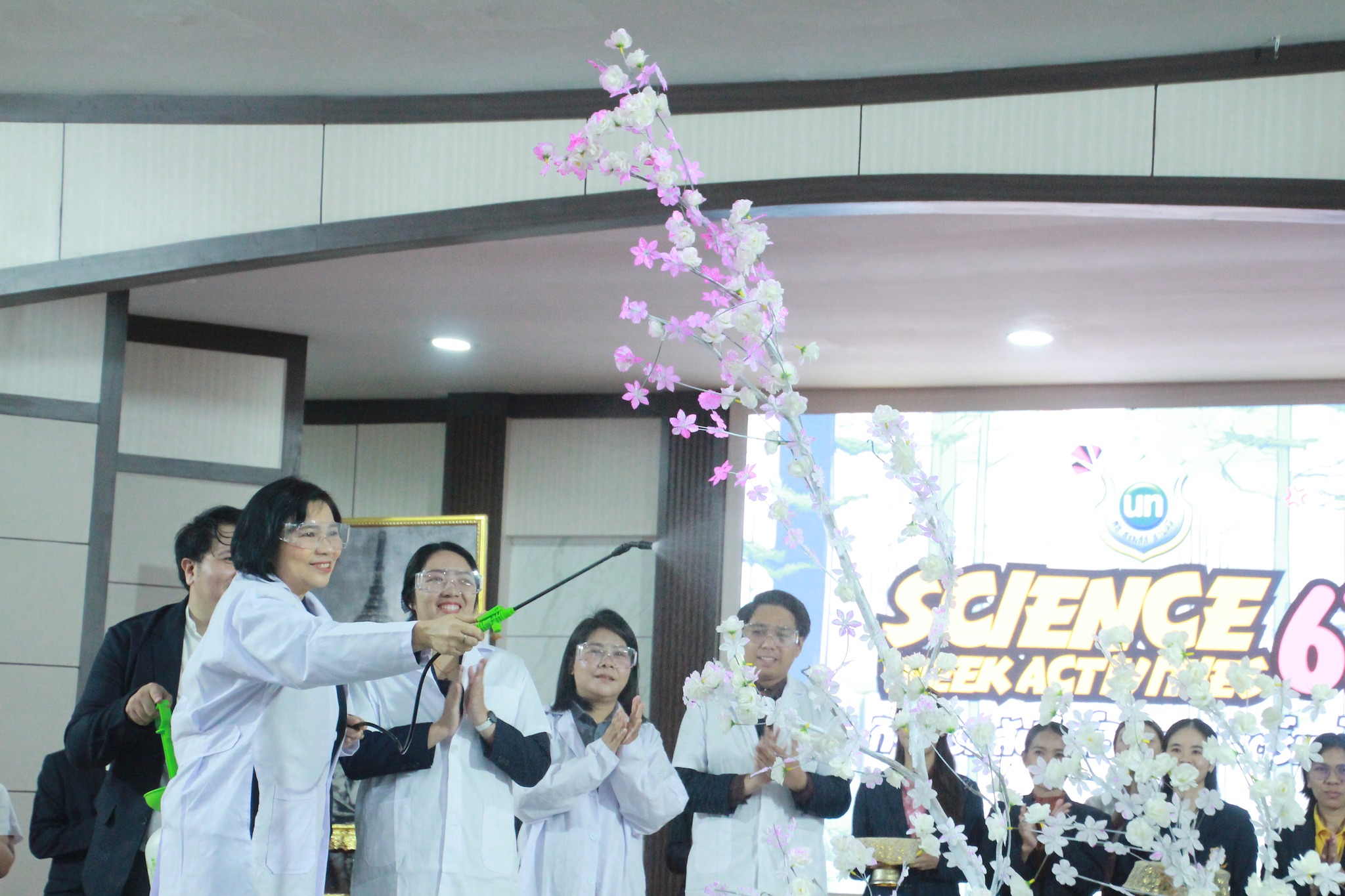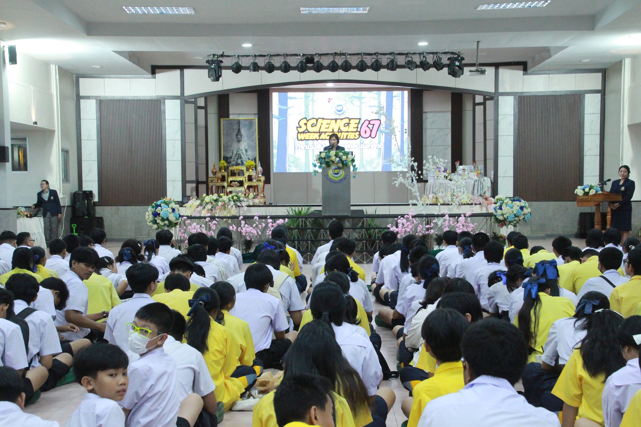 วันศุกร์ที่ 16 สิงหาคม พ.ศ.2567 นางณัฐพัชร์ ศิริเสถียร ผู้อำนวยการโรงเรียนนนทรีวิทยา ได้มอบหมายให้กลุ่มบริหารงานวิชาการ นำโดย นางธิดา หวังสุข รองผู้อำนวยการโรงเรียนนนทรีวิทยา ได้จัดกิจกรรมพิธีเทิดพระเกียรติพระบิดาแห่งวิทยาศาสตร์ไทยและกิจกรรมสัปดาห์วิทยาศาสตร์ ประจำปีการศึกษา 2567 พร้อมด้วยคณะผู้บริหาร ครูและบุคลากรทางการศึกษา และนักเรียน ณ หอประชุมมุนินทร์มนา โรงเรียนนนทรีวิทยา จัดโดยกลุ่มสาระการเรียนรู้วิทยาศาสตร์และเทคโนโลยี ซึ่งตลอดสัปดาห์ได้จัดการแข่งขันกิจกรรมทางวิทยาศาสตร์ต่าง ๆ และภายในงานได้มีกิจกรรมการแสดง Science Show การแสดง Cover Dance การประกวดชุดรีไซเคิลในธีม Mr. VS Ms. ENVI และนิทรรศการโครงงานระดับชั้นมัธยมศึกษาตอนปลายห้องเรียนวิทยาศาสตร์ โดยมีจุดประสงค์เพื่อเทิดพระเกียรติและพระปรีชาสามารถด้านวิทยาศาสตร์และเทคโนโลยีของพระบาทสมเด็จพระจอมเกล้าเจ้าอยู่หัว “พระบิดาแห่งวิทยาศาสตร์ไทย” รวมทั้งเป็นแรงบันดาลใจให้เยาวชนไทยมีใจรักและศึกษาวิชาวิทยาศาสตร์มากขึ้น