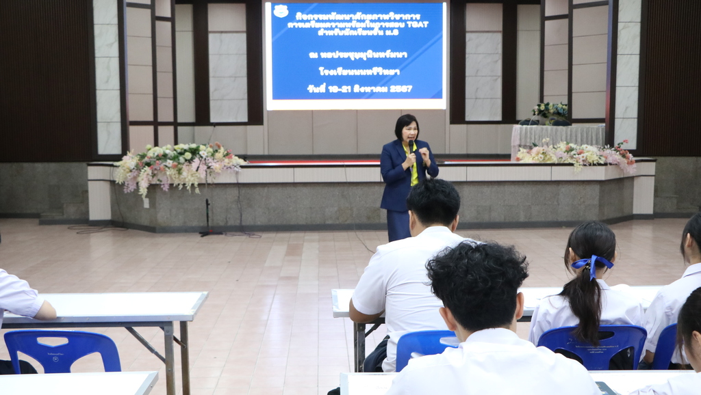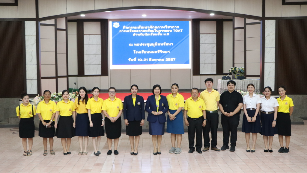 วันจันทร์ที่ 19 สิงหาคม พ.ศ.2567 นางณัฐพัชร์ ศิริเสถียร ผู้อำนวยการโรงเรียนนนทรีวิทยา ได้มอบหมายให้กลุ่มบริหารวิชาการ นำโดย นางธิดา หวังสุข รองผู้อำนวยการโรงเรียนนนทรีวิทยา จัดกิจกรรมเตรียมความพร้อมในการสอบ TGAT ให้กับนักเรียนระดับชั้นมัธยมศึกษาปีที่ 6 ณ หอประชุมมุนินทร์มนา โรงเรียนนนทรีวิทยา โดยมี นางณัฐพัชร์ ศิริเสถียร ผู้อำนวยการโรงเรียนนนทรีวิทยาเป็นประธานในพิธี พร้อมด้วยคณะผู้บริหาร ครูและนักเรียนร่วมกิจกรรม โดยมีกำหนดการติวระหว่างวันที่ 19-21 สิงหาคม พ.ศ.2567 จำนวน 3 วิชา มีวัตถุประสงค์เพื่อเพิ่มความรู้แก่นักเรียนในการเตรียมความพร้อมในการเรียนและการสอบ TGAT ตลอดจนยกระดับผลสัมฤทธิ์ทางการเรียนให้นักเรียนระดับชั้นมัธยมศึกษาปีที่ 6