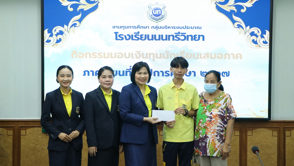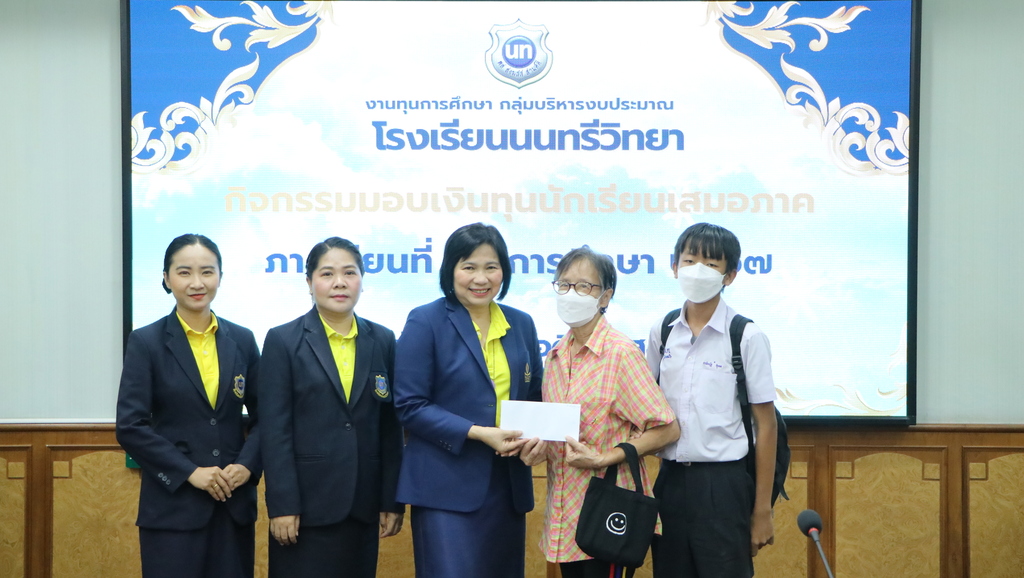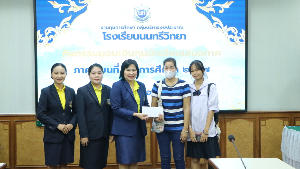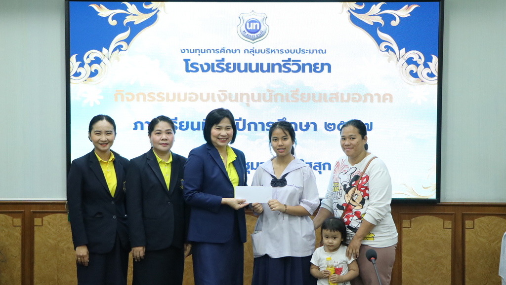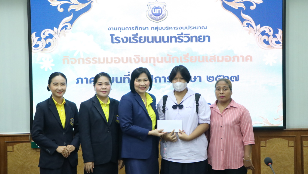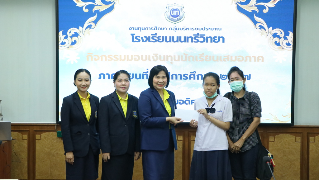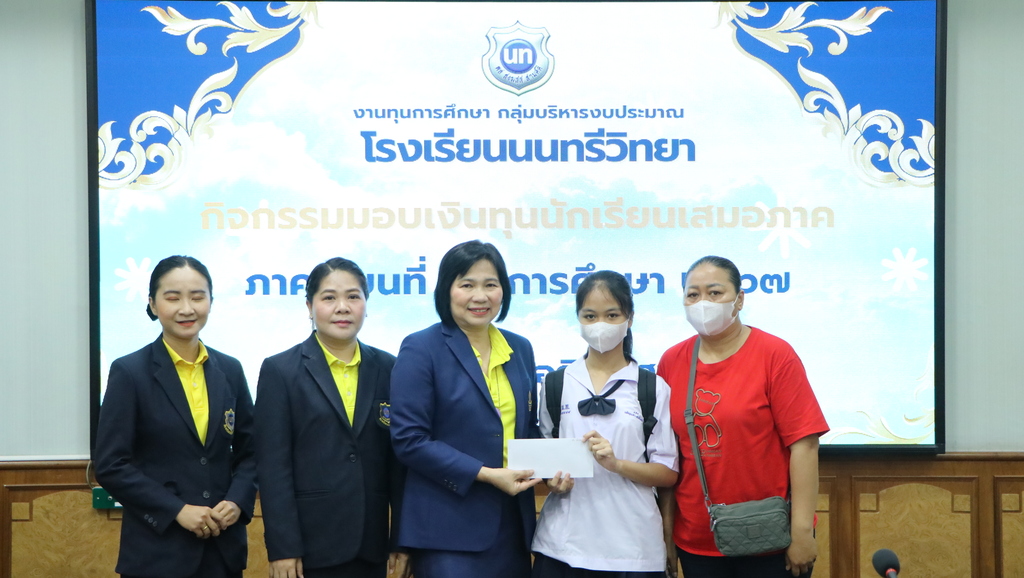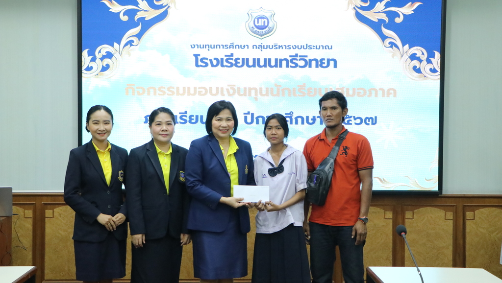 วันจันทร์ที่ 19 สิงหาคม พ.ศ.2567 นางณัฐพัชร์ ศิริเสถียร ผู้อำนวยการโรงเรียนนนทรีวิทยา ได้มอบหมายให้กลุ่มบริหารงบประมาณ นำโดย นางสาวนันท์นภัส จำปารัตน์ รองผู้อำนวยการโรงเรียนนนทรีวิทยา ได้จัดพิธีมอบทุนอุดหนุนนักเรียนยากจนพิเศษแบบมีเงื่อนไข (นักเรียนทุนเสมอภาค) ซึ่งได้รับการจัดสรรจากกองทุนเพื่อความเสมอภาคทางการศึกษา (กสศ.) ประจำปีการศึกษา 2567 ณ ห้องประชุมอดิสร ใสสุก โดยมี นางณัฐพัชร์ ศิริเสถียร ผู้อำนวยการโรงเรียนนนทรีวิทยาได้เป็นประธานในพิธีมอบทุนการศึกษา ให้นักเรียนจำนวนทั้งสิ้น 54 คน ทุนละ 1,740 บาท โดยมีตัวแทนนักเรียนและผู้ปกครองเข้าร่วมพิธีมอบทุน โดยมีวัตถุประสงค์เพื่อเป็นการสนับสนุนให้นักเรียนได้มีทุนทรัพย์ใช้ในการศึกษาต่อไป
