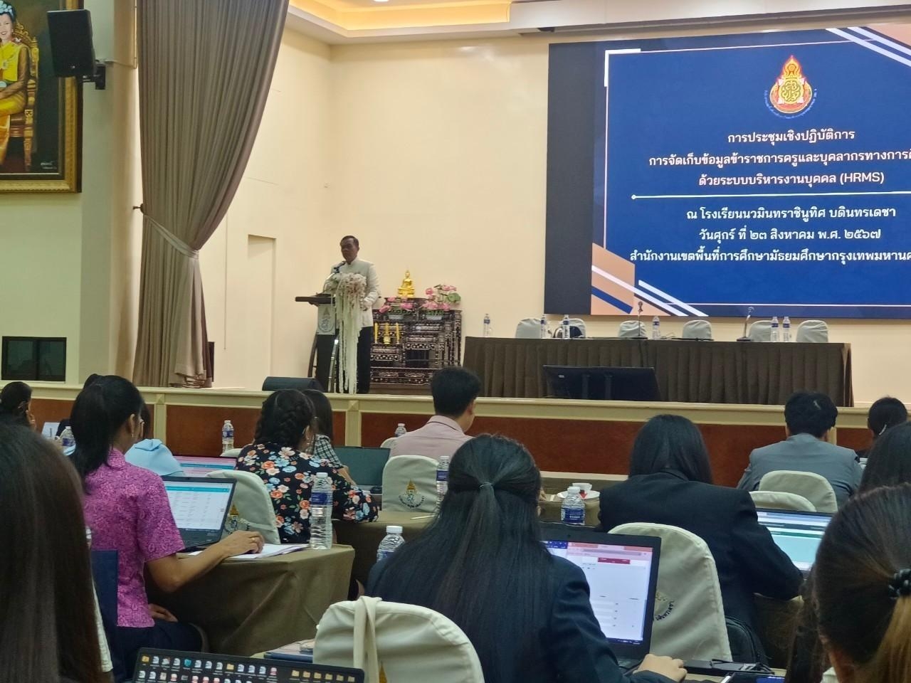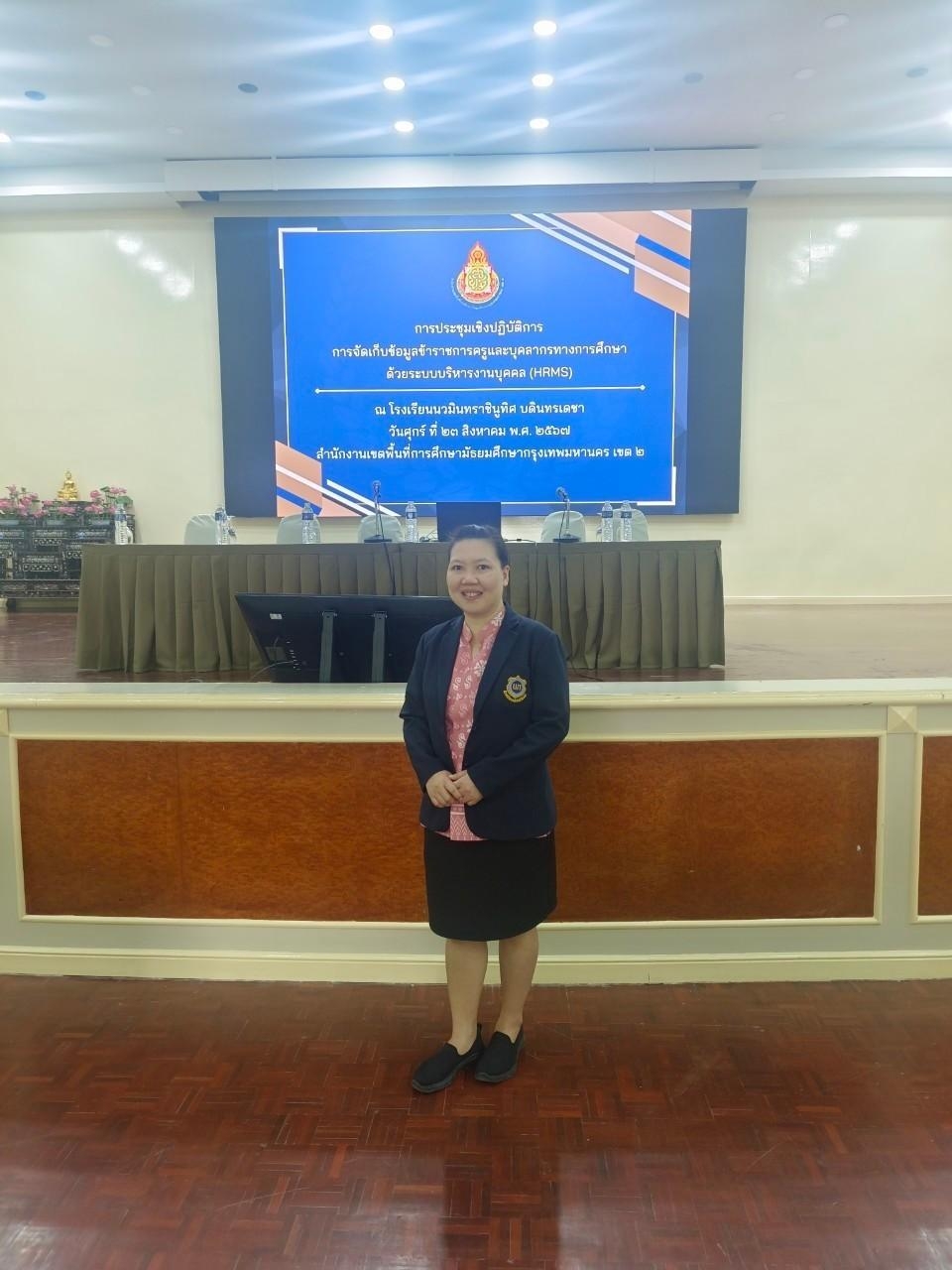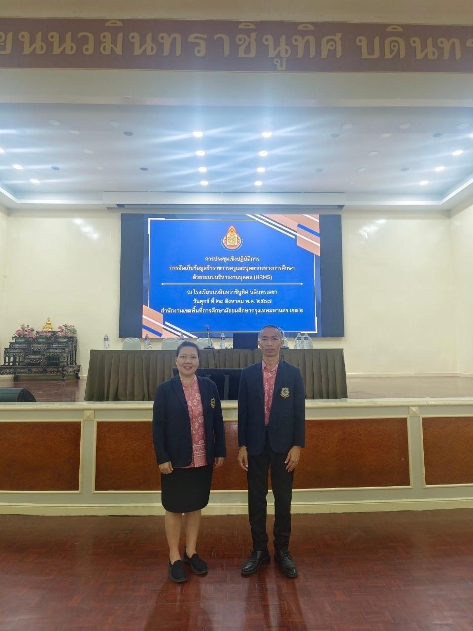 วันศุกร์ที่ 23 สิงหาคม พ.ศ.2567 นางณัฐพัชร์ ศิริเสถียร ผู้อำนวยการโรงเรียนนนทรีวิทยา ได้มอบหมายให้กลุ่มบริหารงานบุคคล นำโดย นายสิริพัฒน์ ทีฆะสุข รองผู้อำนวยการโรงเรียนนนทรีวิทยา ร่วมประชุมเชิงปฏิบัติการการจัดเก็บข้อมูลข้าราชการครูและบุคลากรทางการศึกษาด้วยระบบบริหารงานบุคคล (HRMS) โดยมี นางสาวภิราภรณ์ ฝ่นเรือง และ นายสรชัย จักษุมา เข้าร่วมการประชุม ณ หอประชุมเฉลิมพระเกียรติ 72 พรรษา โรงเรียนนวมินทราชินูทิศ บดินทรเดชา มีวัตถุประสงค์เพื่อกำหนดการปรับปรุงข้อมูลข้าราชการครูและบุคลากรทางการศึกษา ลูกจ้างประจำ พนักงานราชการ ลูกจ้างชั่วคราว ให้เป็นปัจจุบัน ตามนโยบายของสำนักงานคณะกรรมการการศึกษาขั้นพื้นฐาน