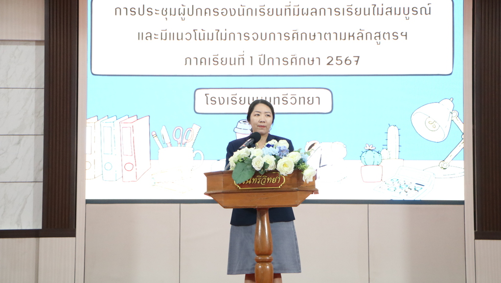 วันเสาร์ที่ 31 สิงหาคม พ.ศ. 2567 นางณัฐพัชร์ ศิริเสถียร ผู้อำนวยการโรงเรียนนนทรีวิทยา ได้มอบหมายให้กลุ่มบริหารวิชาการ นำโดย นางธิดา หวังสุข รองผู้อำนวยการโรงเรียนนนทรีวิทยา จัดการประชุมผู้ปกครองนักเรียนระดับชั้นมัธยมศึกษาปีที่ 3 ที่มีผลการเรียนไม่สมบูรณ์และมีแนวโน้มไม่สำเร็จการศึกษาตามหลักสูตร ภาคเรียนที่ 1 ปีการศึกษา 2567 ณ หอประชุมมุนินทร์มนา โรงเรียนนนทรีวิทยา โดยมี นางธิดา หวังสุข รองผู้อำนวยการโรงเรียนนนทรีวิทยาเป็นประธานในพิธี ซึ่งงานวัดผล ประเมินผลโรงเรียนนนทรีวิทยาเป็นผู้ดำเนินการจัดกิจกรรม โดยมีการประชุมชี้แจงกับผู้ปกครองจากงานวัดผล ประเมินผล กิจกรรมพบครูที่ปรึกษาเพื่อให้คำปรึกษากับนักเรียนและผู้ปกครอง รวมทั้งพบครูประจำรายวิชาที่นักเรียนมีผลการเรียนไม่สมบูรณ์ เพื่อการแก้ไขปัญหาของนักเรียนที่มีผลการเรียนไม่สมบูรณ์และมีแนวโน้มไม่สำเร็จการศึกษาตามหลักสูตรฯ ได้อย่างทันท่วงที