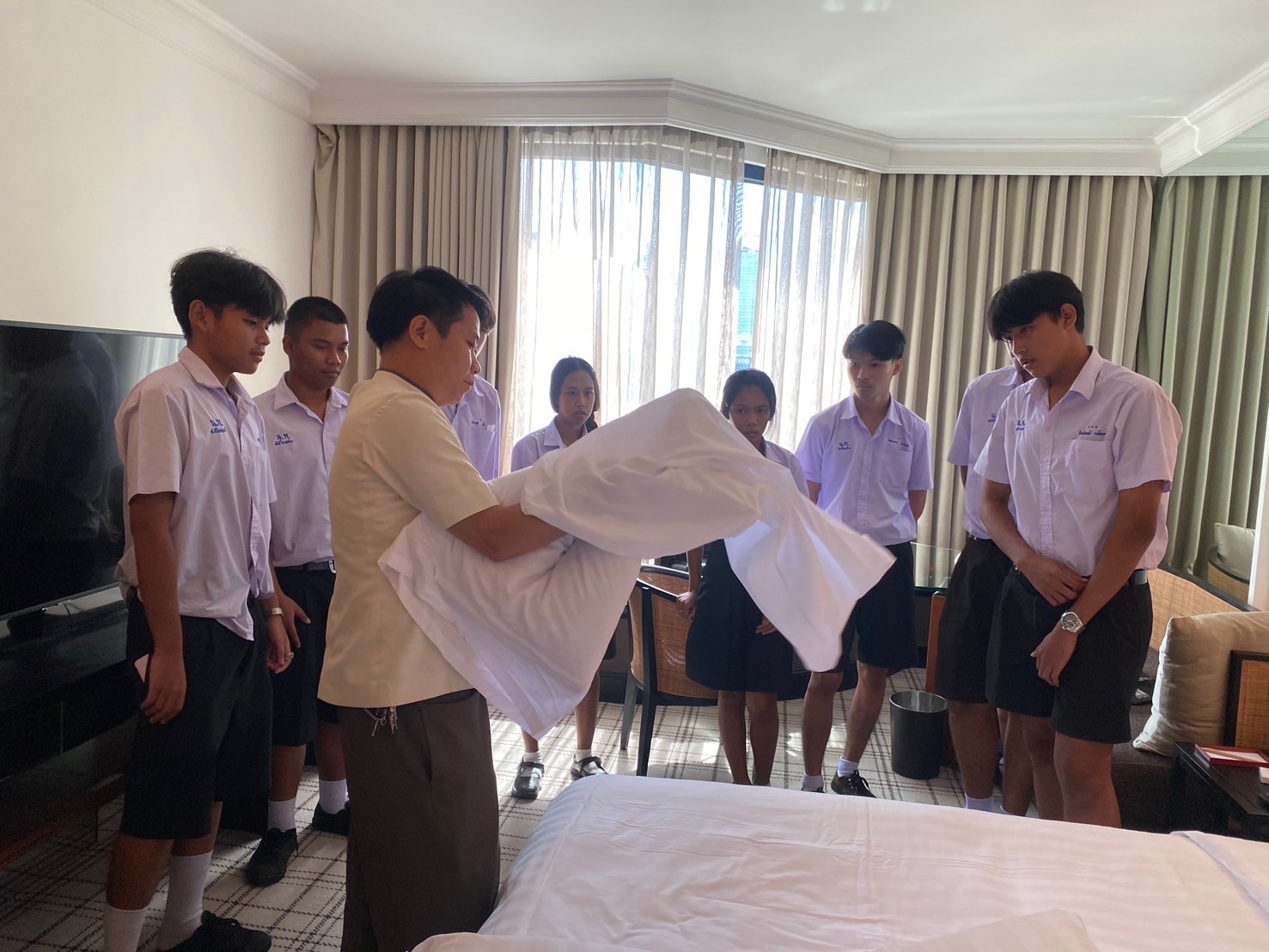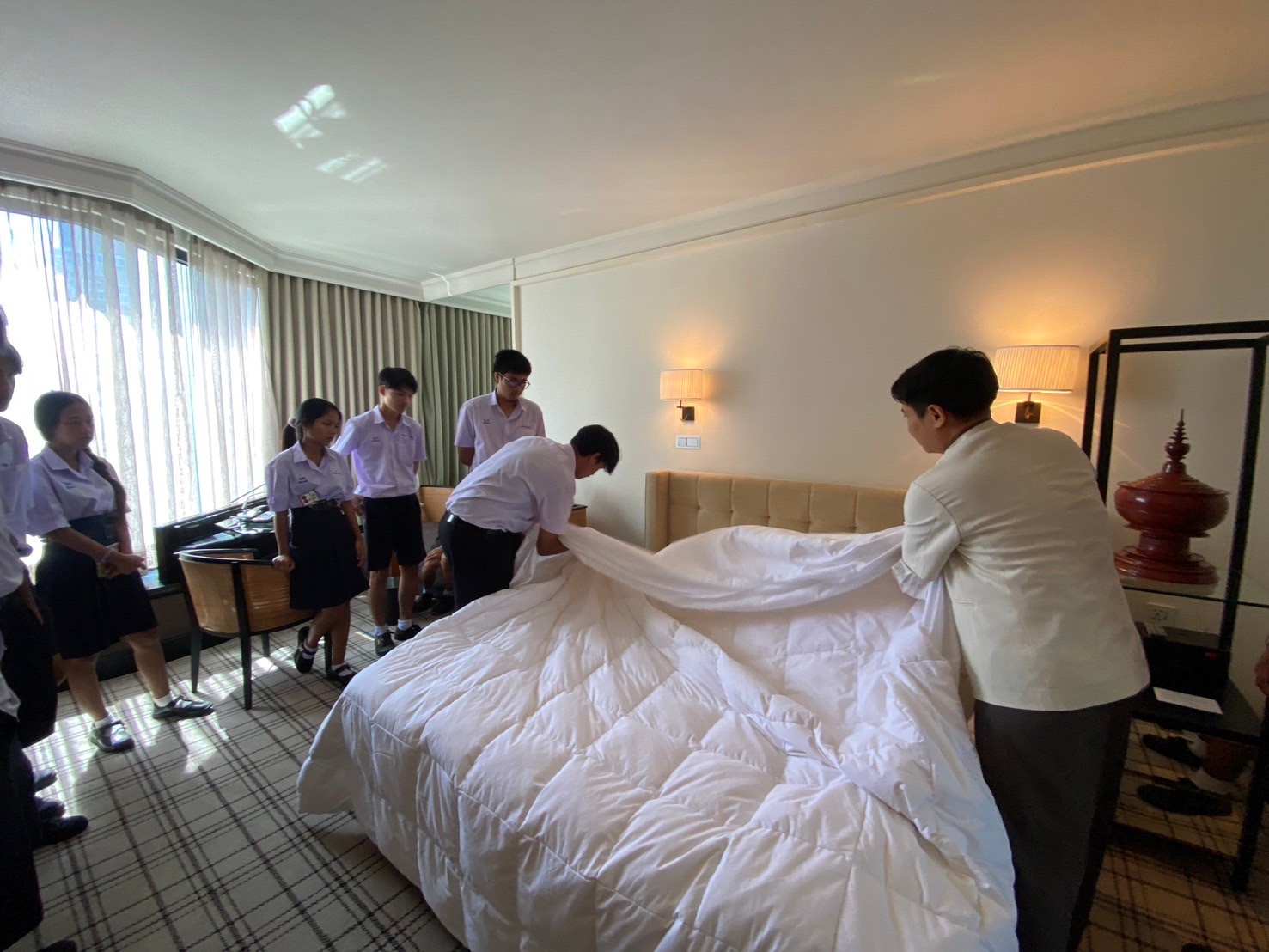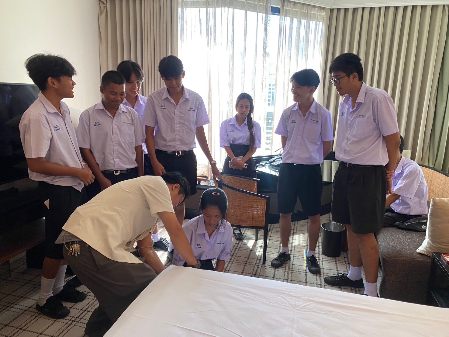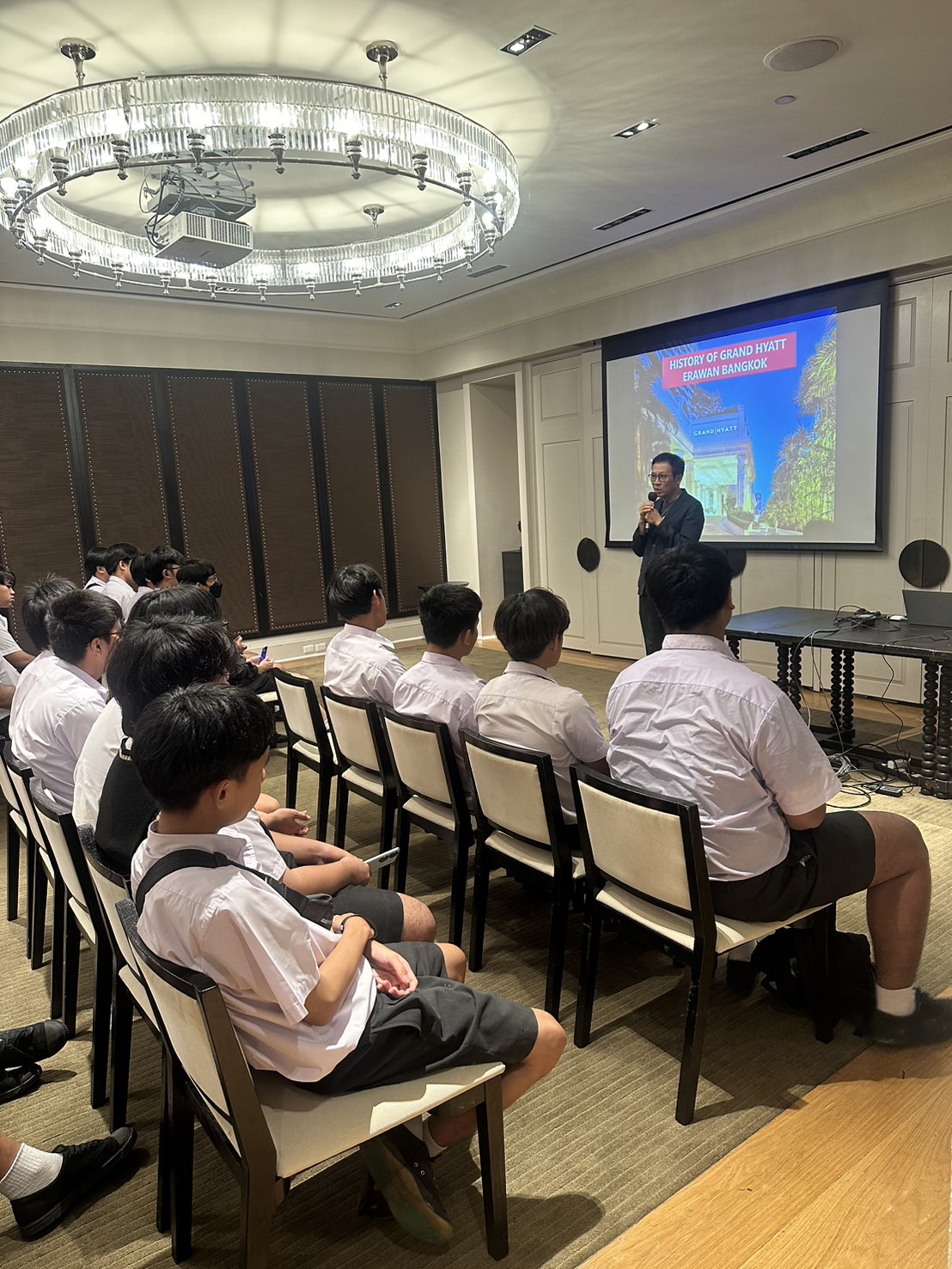 วันพฤหัสบดีที่ 5 กันยายน 2567 นางณัฐพัชร์ ศิริเสถียร ผู้อำนวยการโรงเรียนนนทรีวิทยา ได้มอบหมายให้กลุ่มบริหารวิชาการ นำโดย นางธิดา หวังสุข รองผู้อำนวยการโรงเรียนนนทรีวิทยา นำนักเรียนแผนการเรียนธุรกิจการค้าสมัยใหม่ ระดับชั้นมัธยมศึกษาปีที่ 5 เข้าศึกษาดูงานและทดลองฝึกปฏิบัติงานด้านการโรงเรียนตามรายวิชาการจัดการธุรกิจโรงแรม ณ โรงแรมแกรนด์ ไฮแอท เอราวัณ กรุงเทพฯ โดยมีกลุ่มสาระการเรียนรู้การงานอาชีพเป็นผู้ดำเนินการจัดกิจกรรม มีวัตถุประสงค์เพื่อเปิดโลกทัศน์ให้นักเรียนได้เห็นภาพการทำงานจริงในอุตสาหกรรมการโรงแรม ซึ่งจะส่งผลให้นักเรียนมีความพร้อมในการเลือกศึกษาต่อในระดับที่สูงขึ้นหรือประกอบอาชีพในอนาคตรวมทั้งครูนำความรู้ที่ได้ไปพัฒนาคุณภาพการการจัดการเรียนการสอน