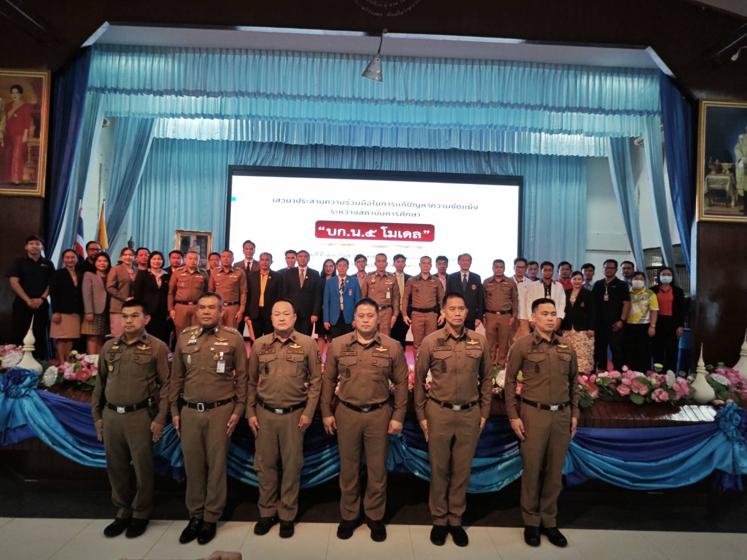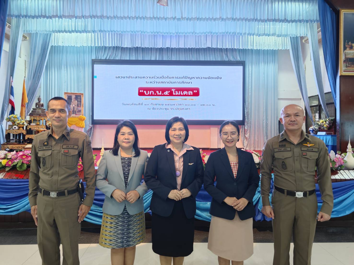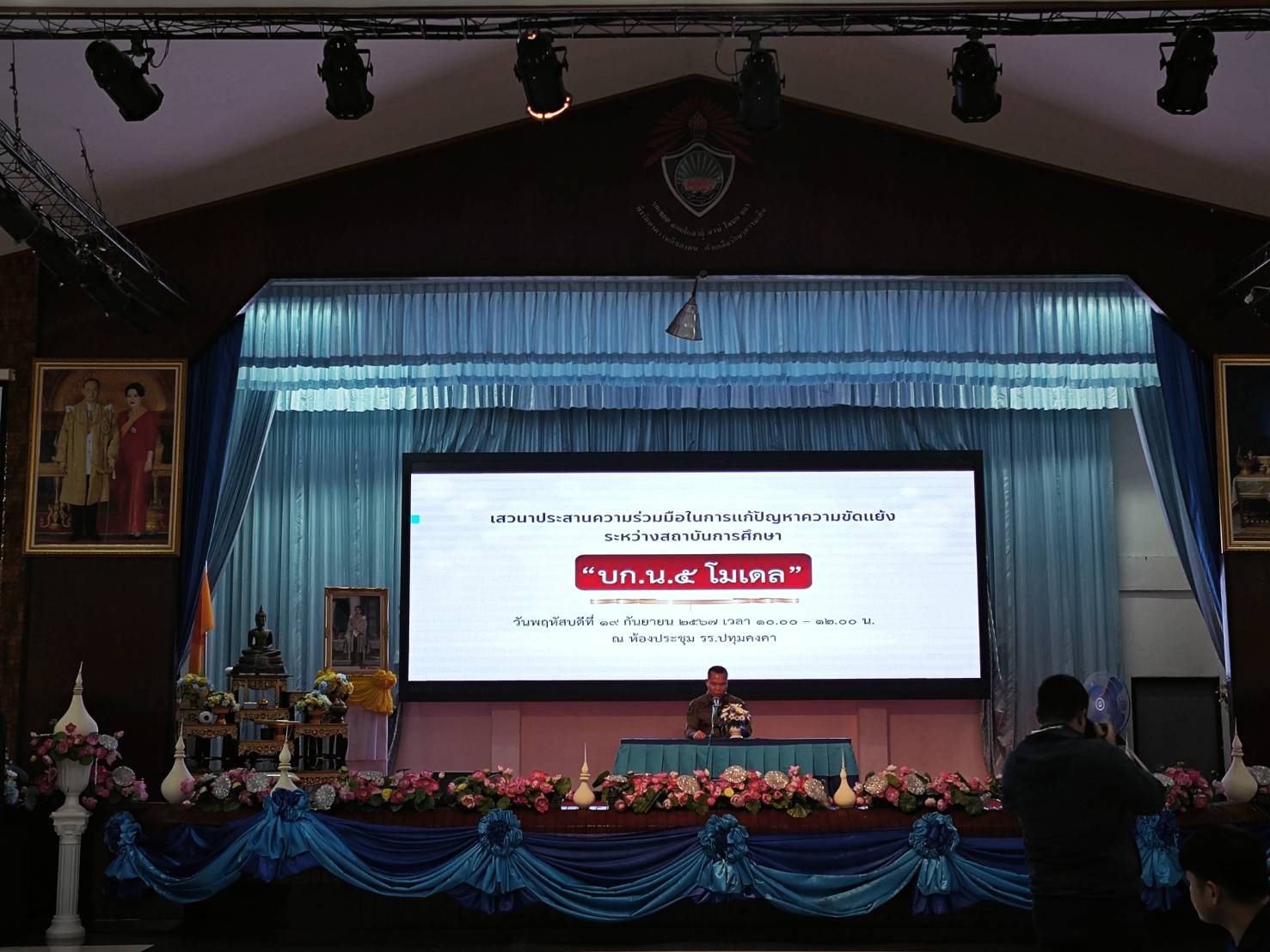 วันพฤหัสบดีที่ 19 กันยายน 2567 นางณัฐพัชร์ ศิริเสถียร ผู้อำนวยการโรงเรียนนนทรีวิทยา พร้อมด้วย นางสาวนันท์นภัส จำปารัตน์ รองผู้อำนวยการกลุ่มบริหารงานบุคคล (กลุ่มกิจการนักเรียน) และ นางสาวเนรัญชลา ธิติพงษ์ หัวหน้างานระบบการดูแลช่วยเหลือนักเรียน เข้าร่วมการเสวนาประสานความร่วมมือ ในการแก้ปัญหาความขัดแย้งระหว่างสถาบันการศึกษา ตามแนวทาง “บก.น. 5 โมเดล” จัดโดย กองบัญชาการตำรวจนครบาล ณ หอประชุมโรงเรียนปทุมคงคา เพื่อหาแนวทางในการแก้ปัญหาความขัดแย้งระหว่างสถาบันการศึกษาร่วมกัน ทั้งในสถาบันการศึกษาระดับมัธยมศึกษา และสถาบันการศึกษาระดับอาชีวศึกษา