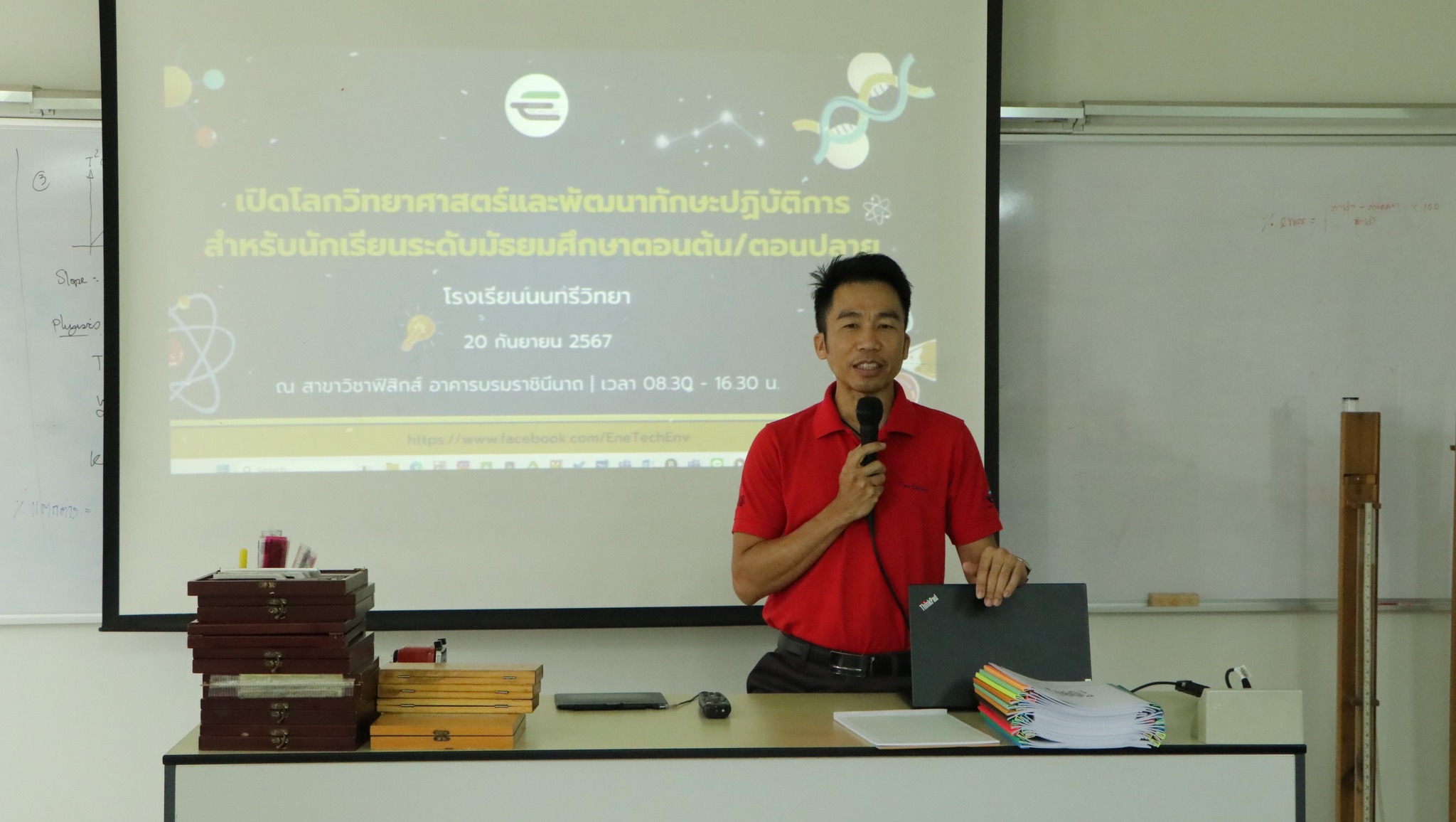วันศุกร์ที่ 20 กันยายน พ.ศ. 2567 นางณัฐพัชร์ ศิริเสถียร ผู้อำนวยการโรงเรียนนนทรีวิทยา มอบหมายให้ นางธิดา หวังสุข รองผู้อำนวยการกลุ่มบริหารวิชาการ นางนิษฐา สุทธิพงษ์ นางสาวนุจนารถ รุ่งอเนกทรัพย์ หัวหน้างานโครงการห้องเรียนพิเศษวิทยาศาสตร์คณิตศาสตร์ (Gifted) และคณะครูนำนักเรียนเข้าร่วมกิจกรรมพัฒนาทักษะปฏิบัติการวิทยาศาศาสตร์ “ค่ายสู่วัน ฉัน Lab… ครั้งที่ 1” ณ มหาวิทยาลัยเทคโนโลยีราชมงคลกรุงเทพ เพื่อพัฒนาทักษะปฏิบัติการทางวิทยาศาสตร์ในสภาพแวดล้อมที่ใกล้เคียงกับการเรียนรู้ในระดับมหาวิทยาลัยเป็นการเสริมสร้างความคิดเชิงวิเคราะห์ กระตุ้นความสนใจในวิทยาศาสตร์และแรงบันดาลใจในการศึกษาวิทยาศาสตร์มากขึ้น ตลอดจนสร้างเครือข่ายทางการศึกษาให้นักเรียนและครูที่เข้าร่วมกิจกรรมได้มีโอกาสพบปะและแลกเปลี่ยนประสบการณ์กับผู้เชี่ยวชาญ เพิ่มพูนทักษะการทำงานเป็นทีม