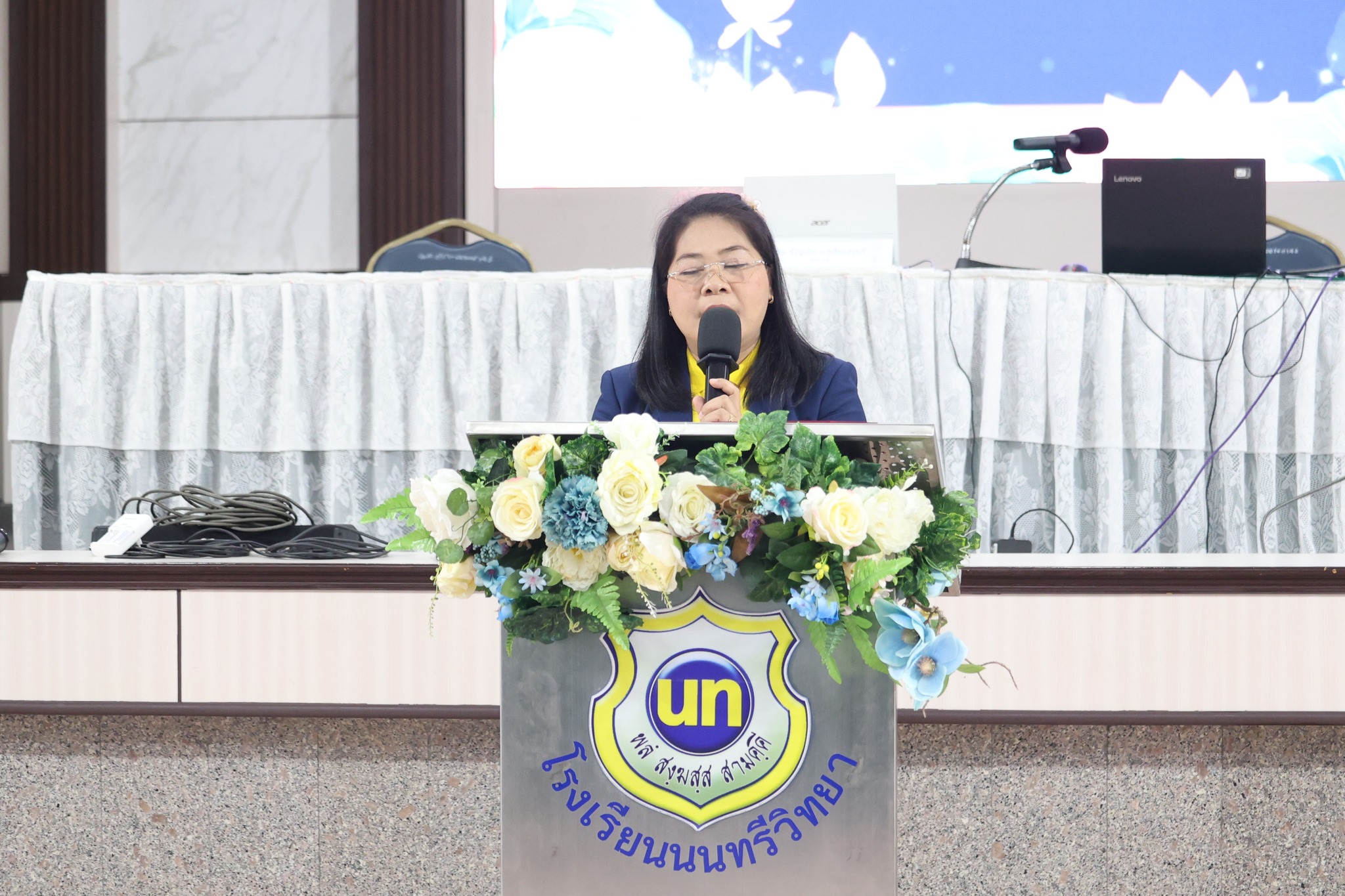 วันจันทร์ที่ 7 ตุลาคม พ.ศ. 2567 นางณัฐพัชร์ ศิริเสถียร ผู้อำนวยการโรงเรียนนนทรีวิทยา มอบหมายให้กลุ่มบริหารงานบุคคล นำโดย นายสิริพัฒน์ ทีฆะสุข รองผู้อำนวยการโรงเรียนนนทรีวิทยา จัดกิจกรรมอบรมเชิงปฏิบัติการเสริมสร้างวินัย คุณธรรม จริยธรรมและจรรยาบรรณสำหรับครู (Teacher training workshop on discipline, ethics, and professionalism) ณ หอประชุมมุนินทร์มนา โรงเรียนนนทรีวิทยา โดยมี นางณัฐพัชร์ ศิริเสถียร ผู้อำนวยการโรงเรียนนนทรีวิทยา เป็นประธานในพิธี พร้อมด้วย คณะผู้บริหาร ครู และบุคลากร เข้าร่วมอบรม ในการอบรมครั้งนี้ได้รับเกียรติจาก ดร.ธัญมัย แฉล้มเขตต์ อดีตท่านผู้อำนวยการโรงเรียนบดินทรเดชา (สิงห์ สิงหเสนี) ๔ เป็นวิทยากรในการอบรม มีวัตถุประสงค์เพื่อส่งเสริม พัฒนา วินัยและจรรยาบรรณวิชาชีพของข้าราชการครูและบุคลากรทางการศึกษา และแลกเปลี่ยนเรียนรู้เกี่ยวกับการแก้ไขปัญหาของผู้เรียน ตามทิศทางจรรยาบรรณครู