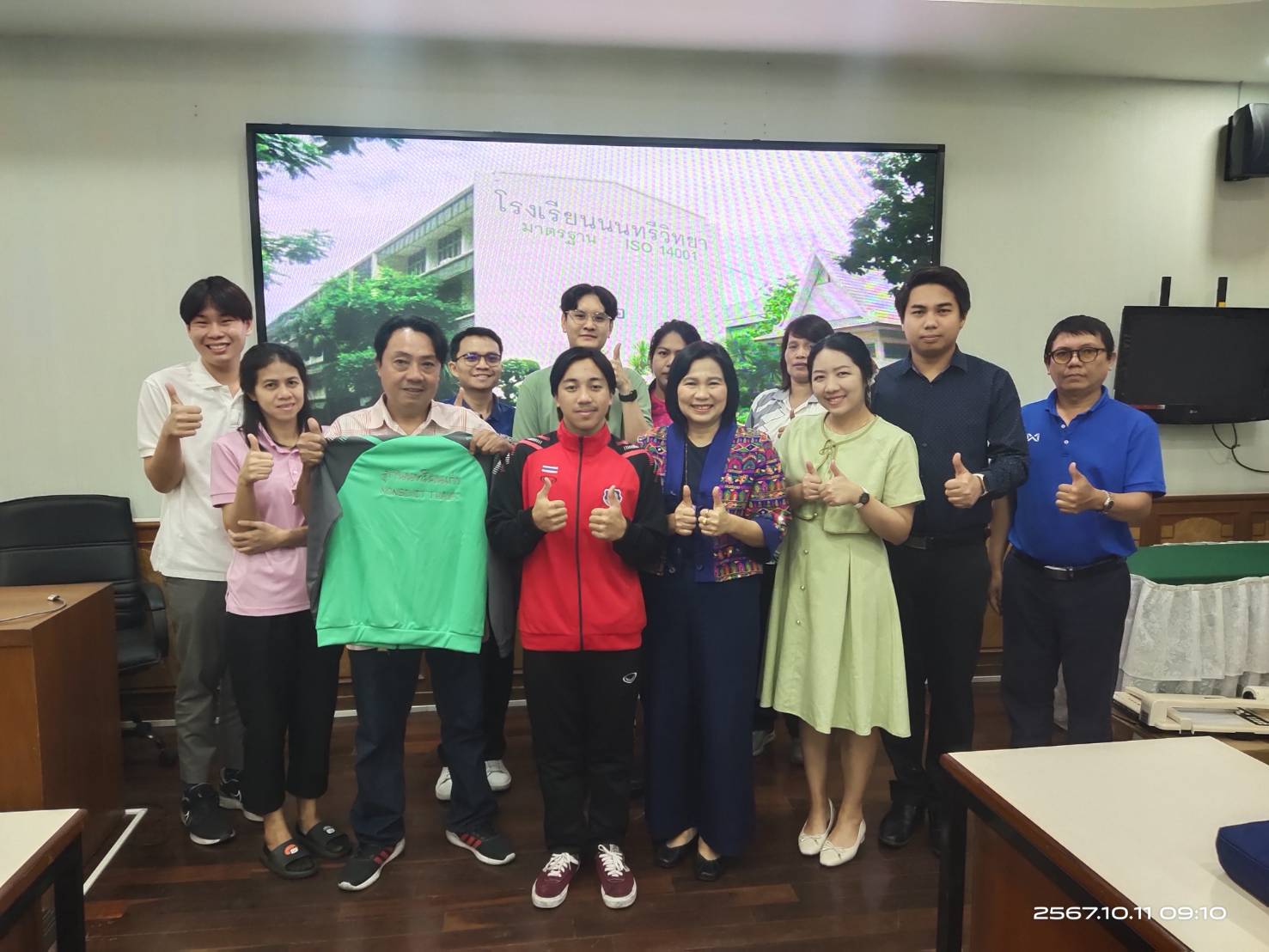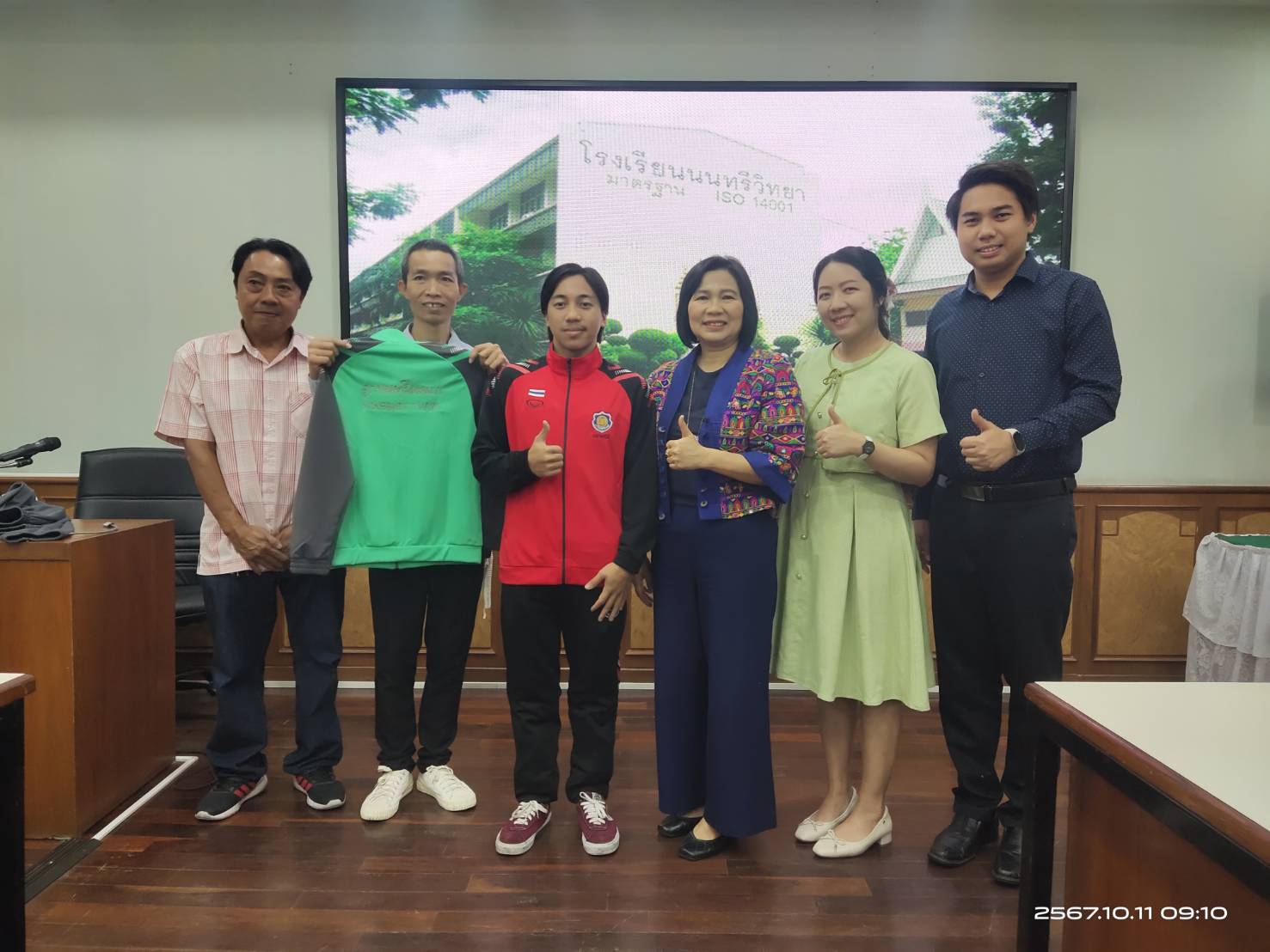 วันศุกร์ที่ 11 ตุลาคม พ.ศ. 2567 นางณัฐพัชร์ ศิริเสถียร ผู้อำนวยการโรงเรียนนนทรีวิทยา พร้อมด้วยคณะผู้บริหาร คณะครู และบุคลากร ร่วมแสดงความยินดีและมอบชุดกีฬาให้กับ นายณุศิต สุวรรณหิรัญพร ที่ได้รับการคัดเลือกเข้าร่วมการแข่งขันกีฬาโรงเรียนโลก ประจำปี ค.ศ. 2024 ระหว่างวันที่ 23 – 31 ตุลาคม พ.ศ. 2567 ณ กรุงมานามา ราชอาณาจักรบาห์เรน ประเภทกีฬาว่ายน้ำในนามโรงเรียนนนทรีวิทยา ณ ห้องประชุมอดิสร ใสสุก โดยมีวัตถุประสงค์เพื่อเป็นขวัญและกำลังใจให้กับนักเรียนในนามตัวแทนของโรงเรียนนนทรีวิทยาและประเทศไทย