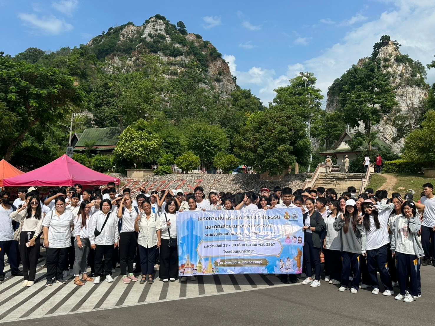 วันที่ 28-30 ตุลาคม 2567 นางณัฐพัชร์ ศิริเสถียร ผู้อำนวยการโรงเรียนนนทรีวิทยา มอบหมายให้ กลุ่มบริหารงานบุคคล(กลุ่มงานกิจการนักเรียน) นำโดย นางสาวนันท์นภัส จำปารัตน์ รองผู้อำนวยการโรงเรียนนนทรีวิทยา ได้จัดกิจกรรมค่ายฝึกอบรมคุณธรรม และศึกษาแหล่งเรียนรู้ภายนอกสถานศึกษา ระดับชั้นมัธยมศึกษาปีที่ 4 ปีการศึกษา 2567 ณ วัดหนองโพ ตำบลหนองโพ อำเภอโพธาราม จังหวัดราชบุรี และอุทยานเขาหินงู อำเภอเมือง จังหวัดราชบุรี โดยมีนักเรียนระดับชั้นมัธยมศึกษาปีที่ 4 และคณะครูที่ปรึกษาระดับชั้นมัธยมศึกษาปีที่ 4 เข้าร่วมกิจกรรม มีวัตถุประสงค์เพื่อส่งเสริมคุณธรรม จริยธรรม คุณลักษณะอันพึงประสงค์ให้แก่นักเรียน