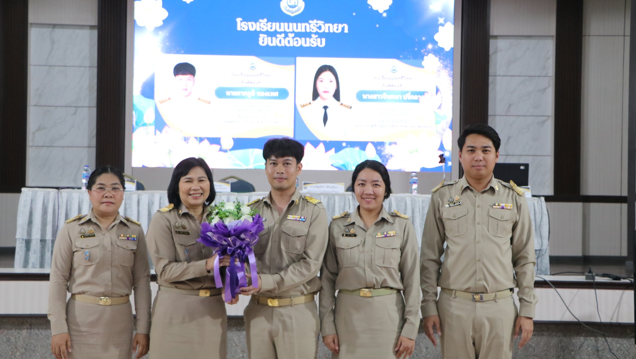 วันอังคารที่ 5 พฤศจิกายน พ.ศ.2567 นางณัฐพัชร์ ศิริเสถียร ผู้อำนวยการโรงเรียนนนทรีวิทยา พร้อมด้วยคณะผู้บริหารและคณะครู ได้ให้การต้อนรับและมอบช่อดอกไม้แสดงความยินดีกับ นายภาคภูมิ ทองเทศ กลุ่มสาระการเรียนรู้ภาษาต่างประเทศ และ นางสาวจินตนา ปรี่กลาง กลุ่มสาระการเรียนรู้สังคมศึกษา ศาสนาและวัฒนธรรม เนื่องในโอกาสได้รับบรรจุแต่งตั้งเป็นข้าราชการครู ตำแหน่ง ครูผู้ช่วย ณ หอประชุมมุนินทร์มนา โรงเรียนนนทรีวิทยา