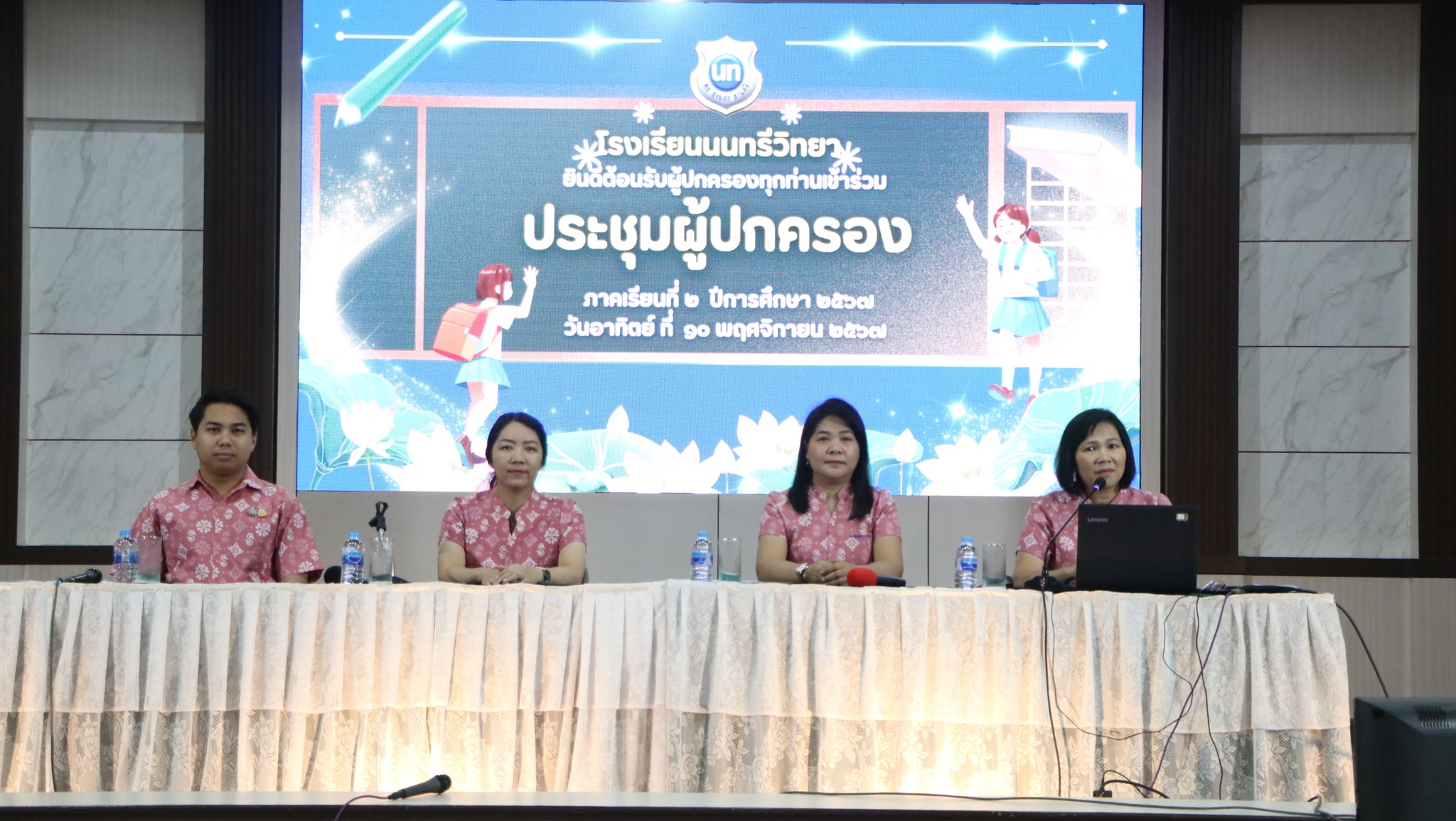 วันอาทิตย์ที่ 10 พฤศจิกายน พ.ศ 2567 นางณัฐพัชร์ ศิริเสถียร ผู้อำนวยการโรงเรียนนนทรีวิทยา ได้มอบหมายให้กลุ่มบริหารงบประมาณ นำโดย นางสาวนันท์นภัส จำปารัตน์ รองผู้อำนวยการโรงเรียนนนทรีวิทยา ได้จัดกิจกรรมประชุมผู้ปกครองนักเรียนระดับชั้นมัธยมศึกษาปีที่ 1-6 ประจำภาคเรียนที่ 2 ปีการศึกษา 2567 ณ หอประชุมมุนินทร์มนา โรงเรียนนนทรีวิทยาโดยมีนางณัฐพัชร์ ศิริเสถียร ผู้อำนวยการโรงเรียนนนทรีวิทยาเป็นประธานในพิธีพร้อมด้วยคณะผู้บริหาร คณะครูและบุคลากรเข้าร่วมกิจกรรม โดยมีวัตถุประสงค์เพื่อให้ผู้ปกครองรับฟังนโยบาย แนวทางปฏิบัติของทางโรงเรียน จากท่านผู้อำนวยการและคณะผู้บริหารรวมทั้งพบครูที่ปรึกษาเพื่อหาแนวทางในการพัฒนานักเรียนร่วมกัน