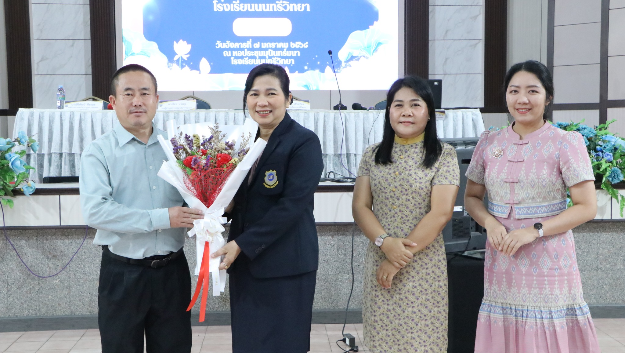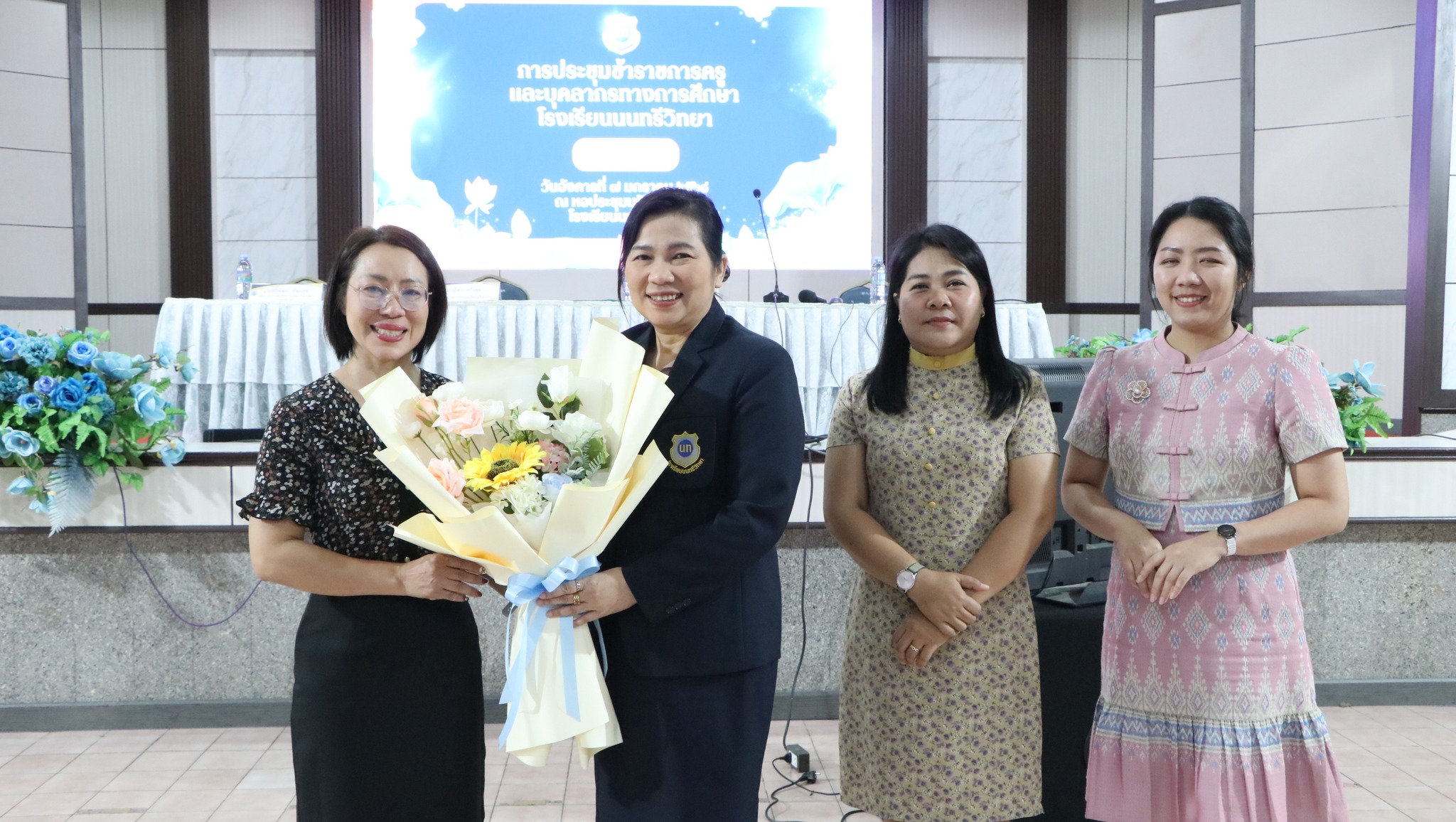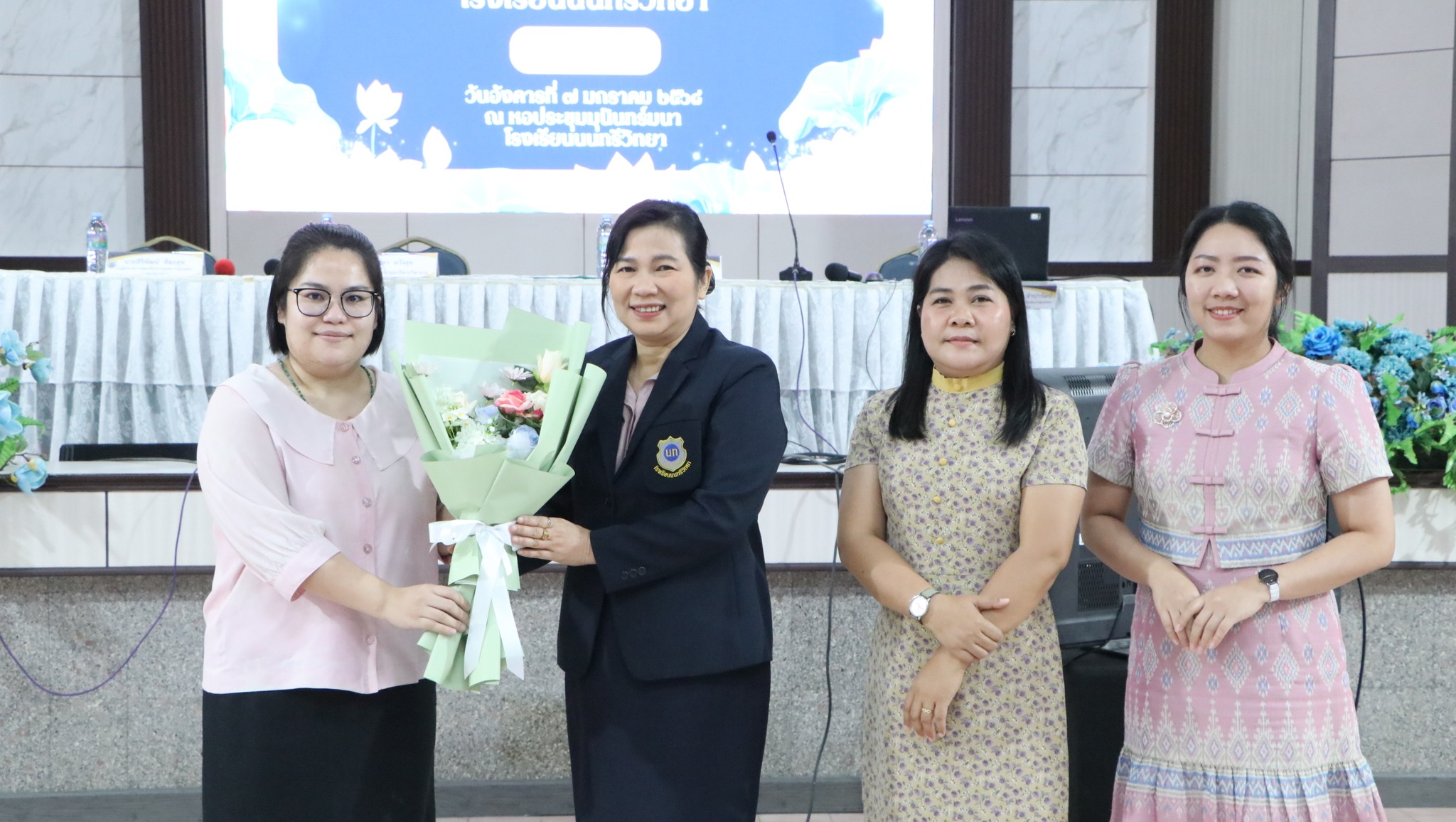 วันอังคารที่ 7 มกราคม 2568 นางณัฐพัชร์ ศิริเสถียร ผู้อำนวยการโรงเรียนนนทรีวิทยา พร้อมด้วยคณะผู้บริหาร ได้มอบช่อดอกไม้แสดงยินดีกับคุณครูที่ได้รับการเลื่อนวิทยฐานะเป็นชำนาญพิเศษ จำนวน 1 ท่าน และแต่งตั้งให้มีวิทยฐานะชำนาญการ จำนวน 3 ท่าน ณ หอประชุมมุนินทร์มนา โรงเรียนนนทรีวิทยา โดยผู้อำนวยการและคณะผู้บริหารได้มอบช่อดอกไม้แสดงยินดีให้กับคุณครูที่ได้รับการเลื่อนวิทยฐานะ