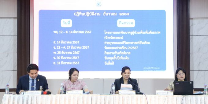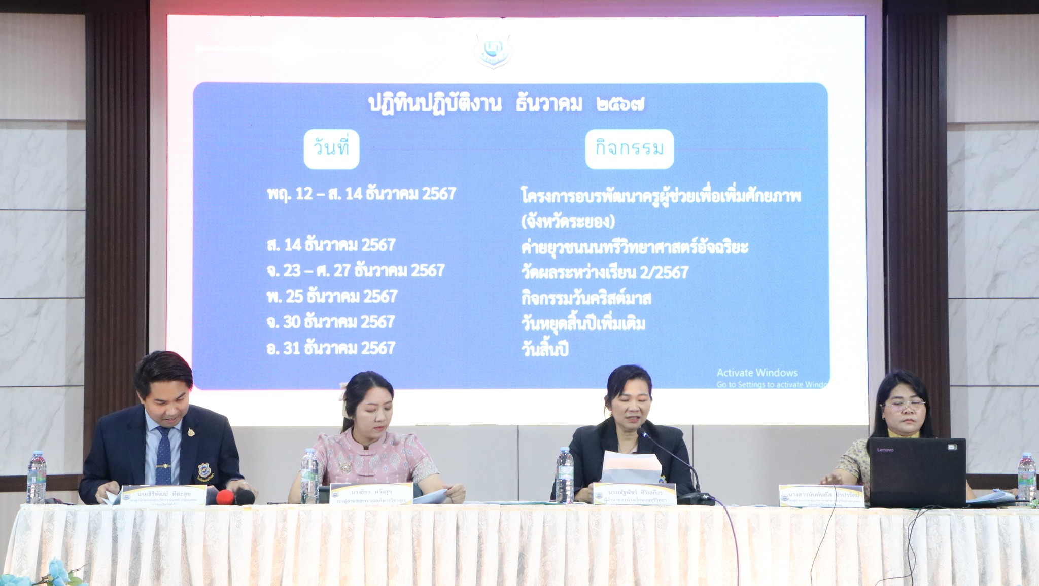วันอังคารที่ 7 มกราคม 2568 นางณัฐพัชร์ ศิริเสถียร ผู้อำนวยการโรงเรียนนนทรีวิทยา เป็นประธานการประชุมครู ครั้งที่ 1 ประจำปี 2568 พร้อมด้วยคณะผู้บริหาร ณ หอประชุมมุนินทร์มนา โรงเรียนนนทรีวิทยา เพื่อชี้แจงผลการปฏิบัติงานและความคืบหน้าการปฏิบัติงานที่ผ่านมา ปฏิทิน การปฏิบัติงาน แนวทางการปฏิบัติงาน และข้อราชการต่าง ๆ ให้แก่คณะครูและบุคลากรทางการศึกษาได้รับฟังร่วมกัน สร้างความเข้าใจในการปฏิบัติงานร่วมกัน ส่งผลให้เกิดการทำงานที่มีประสิทธิภาพ
