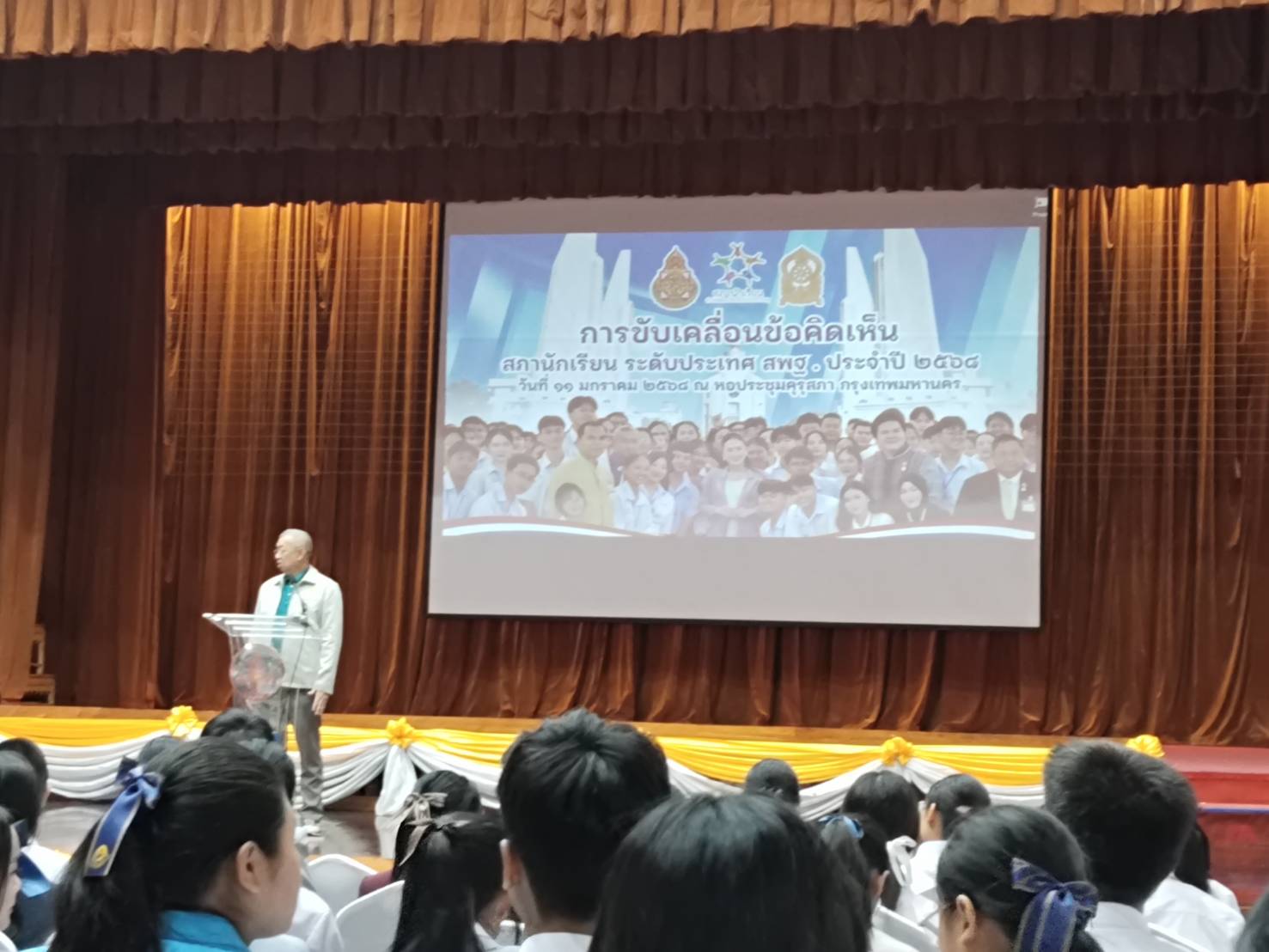 วันเสาร์ที่ 11 มกราคม 2568 นางณัฐพัชร์ ศิริเสถียร ผู้อำนวยการโรงเรียนนนทรีวิทยา ได้มอบหมายให้กลุ่มบริหารงานบุคคล(กลุ่มงานกิจการนักเรียน) นำโดย นางสาวนันท์นภัส จำปารัตน์ รองผู้อำนวยการโรงเรียนนนทรีวิทยา ได้ดำเนินการส่งตัวแทนนักเรียนและครูเข้าร่วมกิจกรรม “การขับเคลื่อนข้อคิดเห็นสภานักเรียน ระดับประเทศ สพฐ. ประจำปี 2568” เนื่องในวันเด็กแห่งชาติ ณ หอประชุมคุรุสภา กรุงเทพมหานคร โดยมี นายธีระเดช เทียนศิริ นักเรียนชั้น ม.5/8 ตัวแทนสภานักเรียน และ นายสมชาย ย่างก้าวเจริญ ครูที่ปรึกษางานสภานักเรียน เข้าร่วมกิจกรรม จัดโดยสำนักงานคณะกรรมการการศึกษาขั้นพื้นฐาน กระทรวงศึกษาธิการ