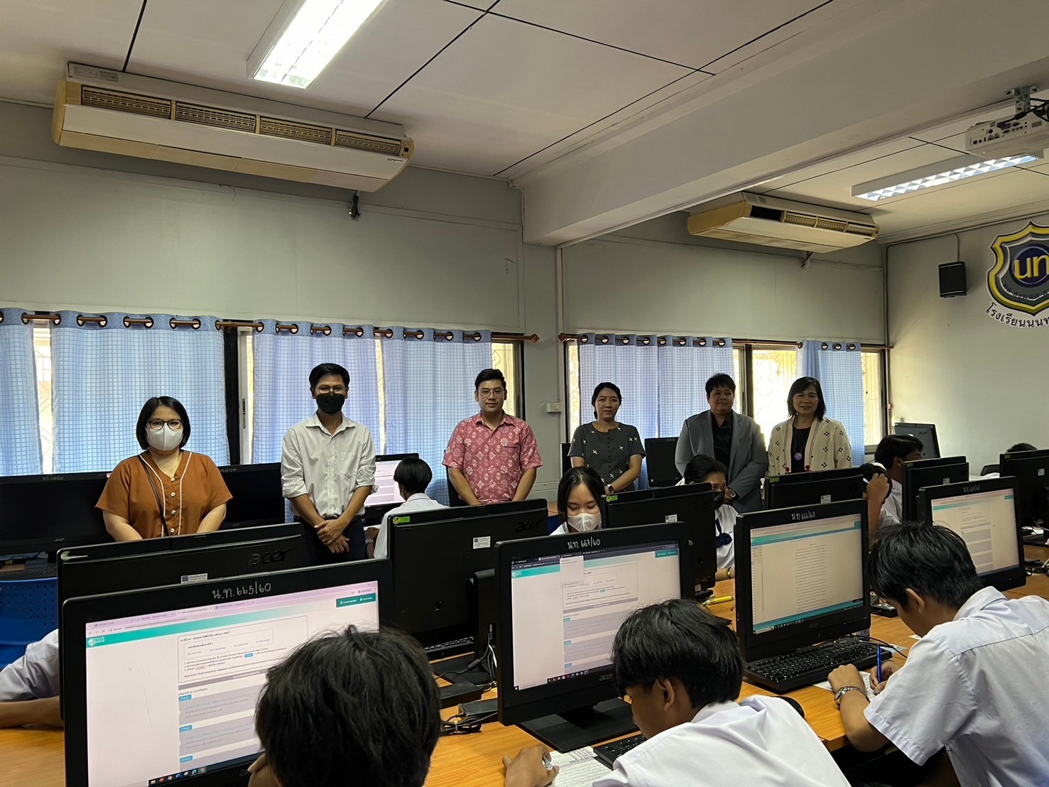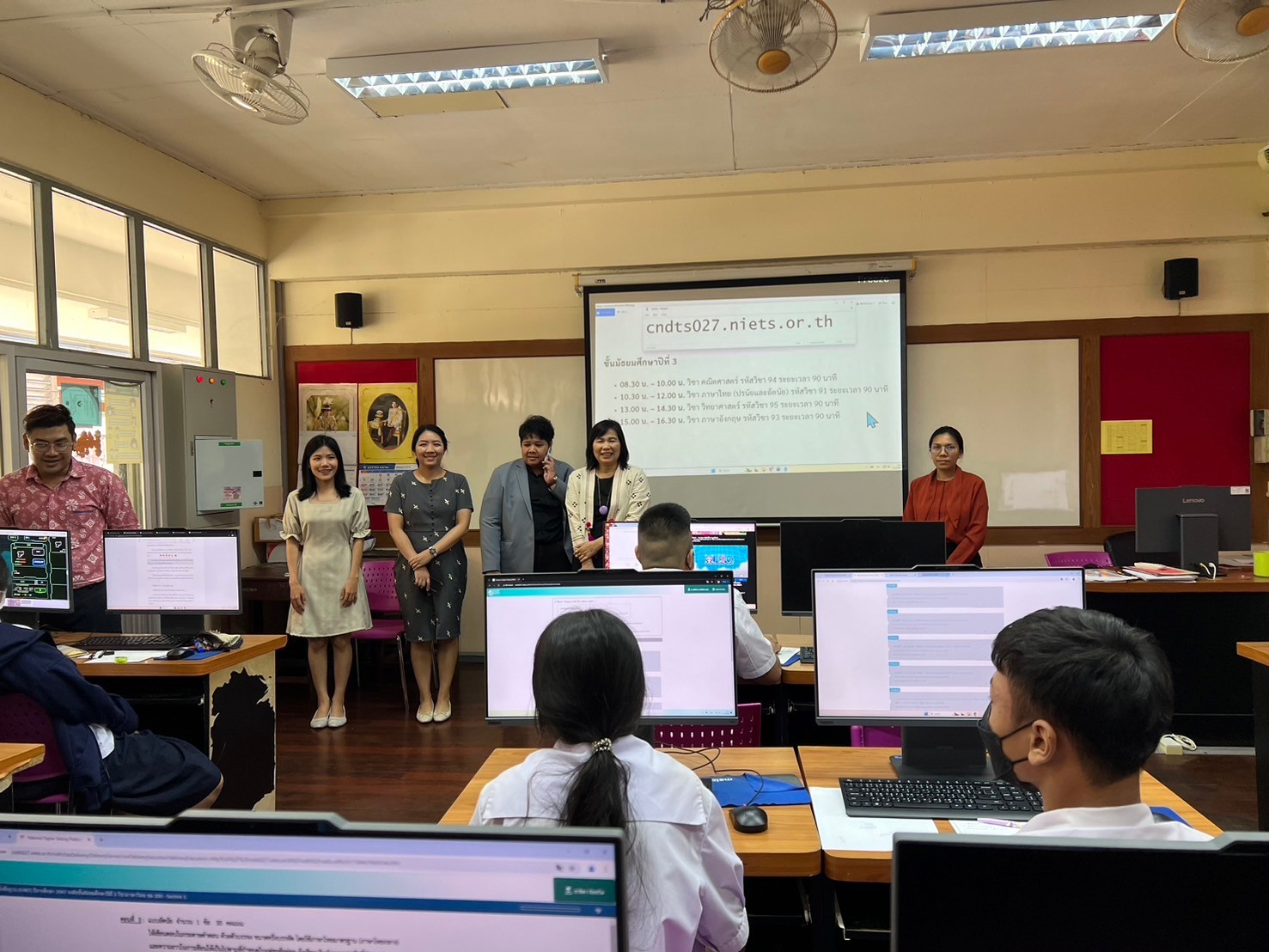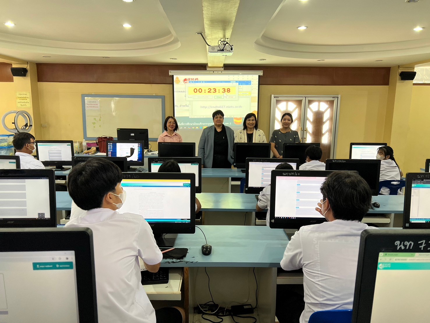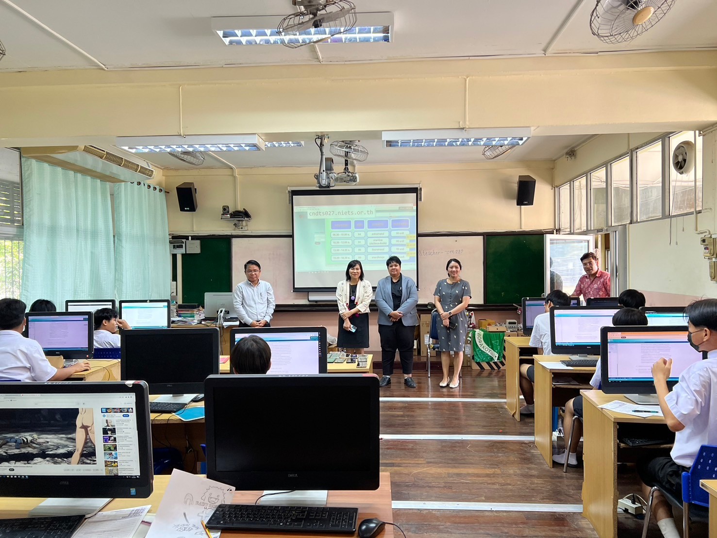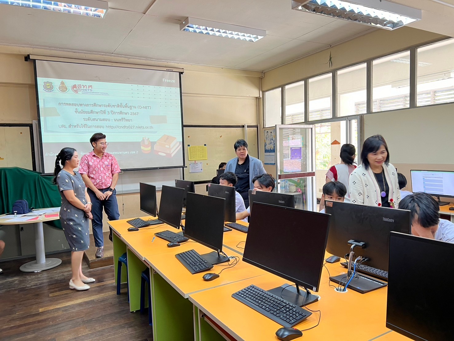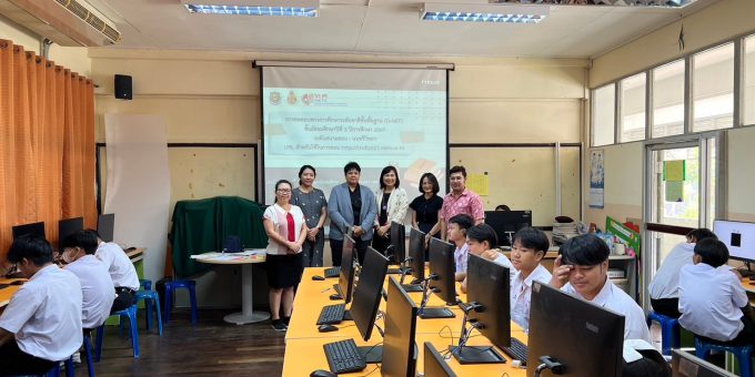 วันเสาร์ที่ 2 กุมภาพันธ์ 2568 นางณัฐพัชร์ ศิริเสถียร ผู้อำนวยการโรงเรียนนนทรีวิทยา หัวหน้าสนามสอบโรงเรียนนนทรีวิทยา พร้อมด้วยคณะผู้บริหาร นำโดย นางธิดา หวังสุข รองผู้อำนวยการกลุ่มบริหารวิชาการ คณะกรรมการดำเนินการประจำสนามสอบโรงเรียนนนทรีวิทยา ดำเนินการจัดสอบทางการศึกษาระดับชาติขั้นพื้นฐาน (O-NET) ด้วยระบบดิจิทัล (Digital Testing) ของนักเรียน ระดับชั้นมัธยมศึกษาปีที่ 3 ปีการศึกษา 2567 ทั้งนี้เป็นการขยายโอกาสในการเข้ารับการทดสอบของนักเรียนให้เข้าถึงได้ทุกพื้นที่ รองรับรูปแบบการทดสอบที่มีการใช้สื่อสารสนเทศแบบผสมผสาน ที่มีความทันสมัย อีกทั้งยังช่วยประหยัดเวลา งบประมาณ ทรัพยากรในการจัดการทดสอบ และเพื่อให้ผลการทดสอบบรรลุตามวัตถุประสงค์ของการทดสอบที่มีความโปร่งใส ยุติธรรม และมีมาตรฐาน