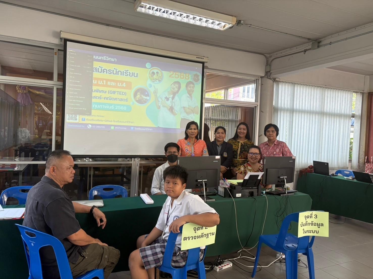 วันที่ 15-19 กุมภาพันธ์ 2568 โรงเรียนนนทรีวิทยาเปิดรับสมัครคัดเลือกนักเรียนเข้าเรียนในระดับชั้นมัธยมศึกษาปีที่ 1 และชั้นมัธยมศึกษาปีที่ 4 ห้องเรียนพิเศษวิทยาศาสตร์-คณิตศาสตร์ (GIFTED) ประจำปีการศึกษา 2568 ณ อาคารพิพิธภัณฑ์คงเที่ยง โรงเรียนนนทรีวิทยา โดยมีคณะกรรมการรับสมัครนักเรียนช่วยอำนวยความสะดวกและตอบข้อซักถามต่าง ๆ ให้กับนักเรียนและผู้ปกครอง