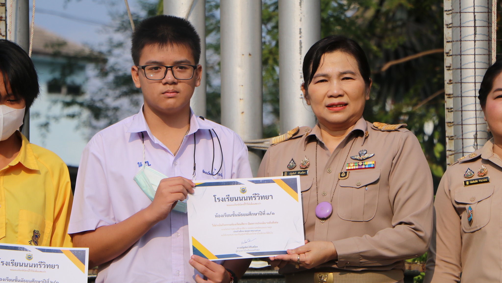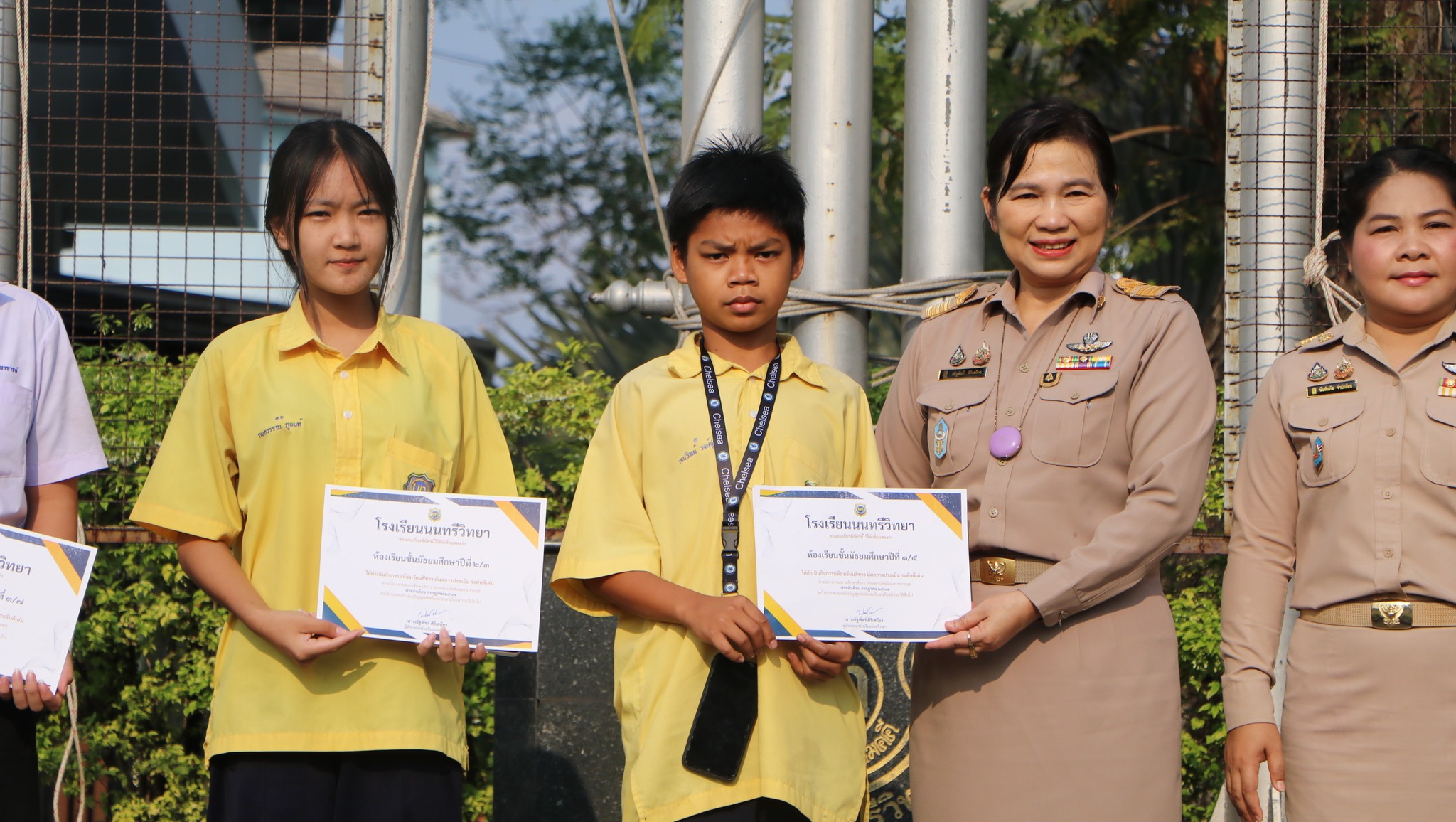 วันจันทร์ที่ 17 กุมภาพันธ์ 2568 นางณัฐพัชร์ ศิริเสถียร ผู้อำนวยการโรงเรียนนนทรีวิทยา ได้มอบหมายให้กลุ่มบริหารงานบุคคล(กลุ่มงานกิจการนักเรียน) นำโดย นางสาวนันท์นภัส จำปารัตน์ รองผู้อำนวยการโรงเรียนนนทรีวิทยา จัดพิธีการมอบเกียรติบัตรให้แก่ห้องเรียนสีขาวดีเด่น ณ บริเวณหน้าเสาธง โรงเรียนนนทรีวิทยา โดยมี นางณัฐพัชร์ ศิริเสถียร ผู้อำนวยการโรงเรียนนนทรีวิทยา เป็นประธานในการมอบเกียรติบัตร พร้อมด้วยคณะผู้บริหาร มีวัตถุประสงค์เพื่อสร้างขวัญและกำลังใจให้กับห้องเรียนที่มีส่วนร่วมในการสร้างกระบวนการดำเนินงานเพื่อให้สถานศึกษาปลอดสิ่งเสพติดรวมทั้งลดพฤติกรรมอันไม่พึงประสงค์