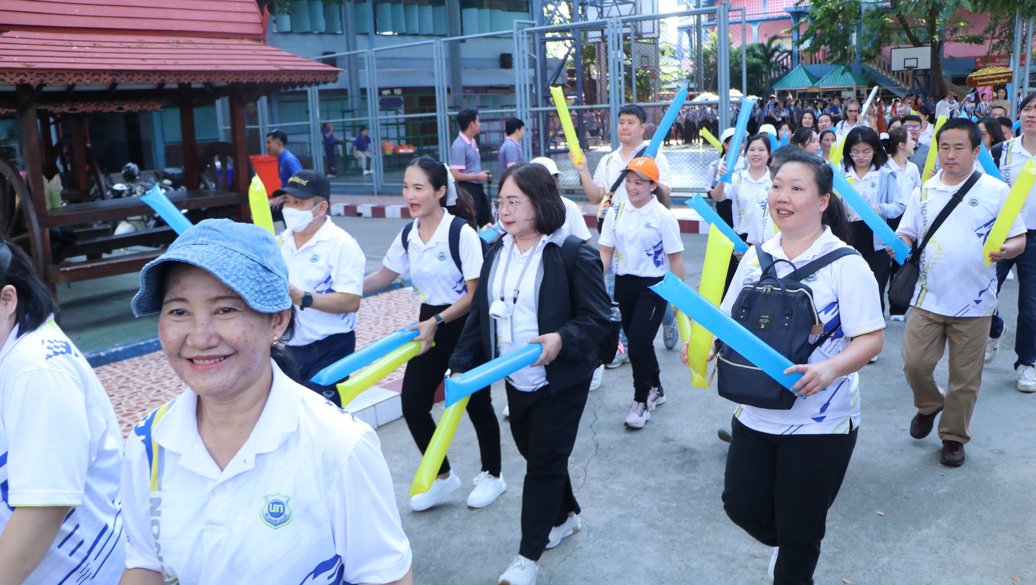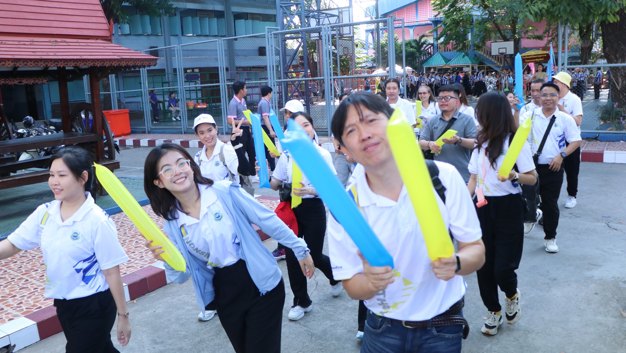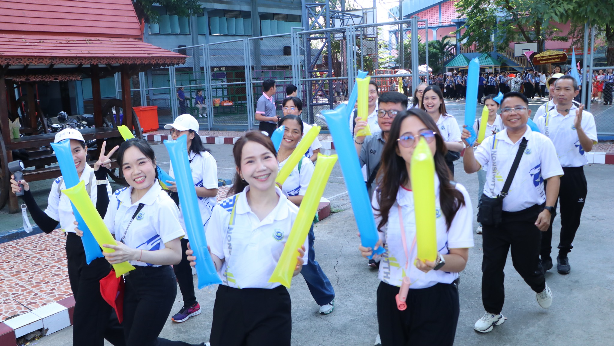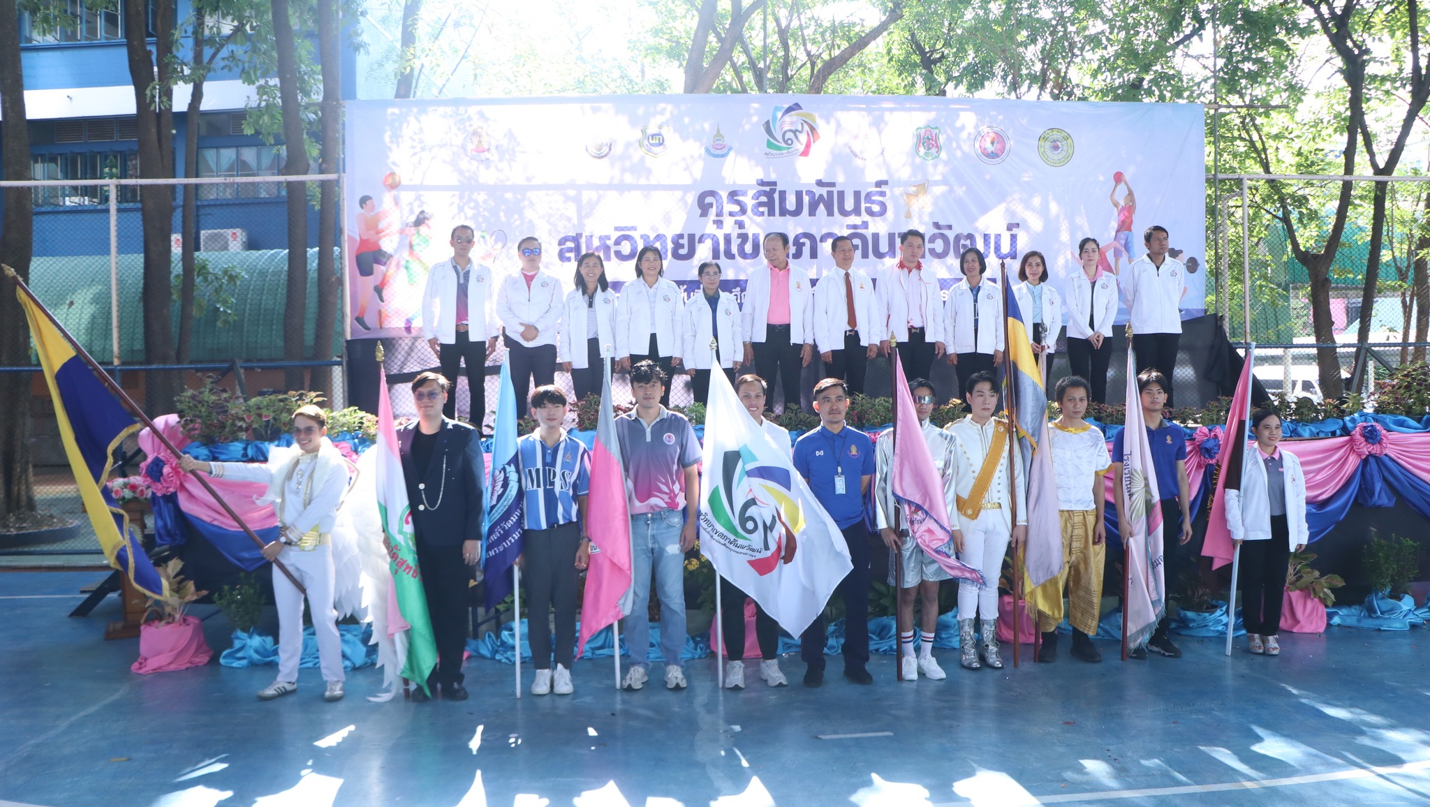 วันพฤหัสบดีที่ 6 มีนาคม 2568 นางณัฐพัชร์ ศิริเสถียร ผู้อำนวยการโรงเรียนนนทรีวิทยา พร้อมด้วยคณะผู้บริหาร และคณะครูได้เข้าร่วมกิจกรรมคุรุสัมพันธ์สหวิทยาเขตภาคีนพวัฒน์ ประจำปีการศึกษา 2567 ณ โรงเรียนเตรียมอุดมศึกษาพัฒนาการรัชดา โดยมี ดร.พัฒนะ พัฒนทวีดล รองเลขาธิการคณะกรรมการการศึกษาขั้นพื้นฐาน เป็นประธานในพิธีพร้อมด้วย ดร.บัญชา ปลื้มอารมณ์ รองผู้อำนวยการสำนักงานเขตพื้นที่การศึกษามัธยมศึกษากรุงเทพมหานคร เขต 2 และคณะผู้บริหารโรงเรียนในสหวิทยาเขตภาคีนพวัฒน์ ภายในกิจกรรมประกอบไปด้วยขบวนพาเหรดของโรงเรียนในสหวิทยาเขตภาคีนพวัฒน์ การมอบรางวัลเชิดชูเกียรติ สดุดีภาคีนพวัฒน์ การแข่งขันเชียร์ลีดเดอร์และการแข่งขันจากคณะผู้บริหารและครู โดยมีวัตถุประสงค์เพื่อส่งเสริมการออกกำลังกาย เสริมสร้างความสามัคคีในหมู่คณะ รู้จักการทำงานเป็นทีม แลกเปลี่ยนเรียนรู้และส่งเสริมความเป็นประชาธิปไตย