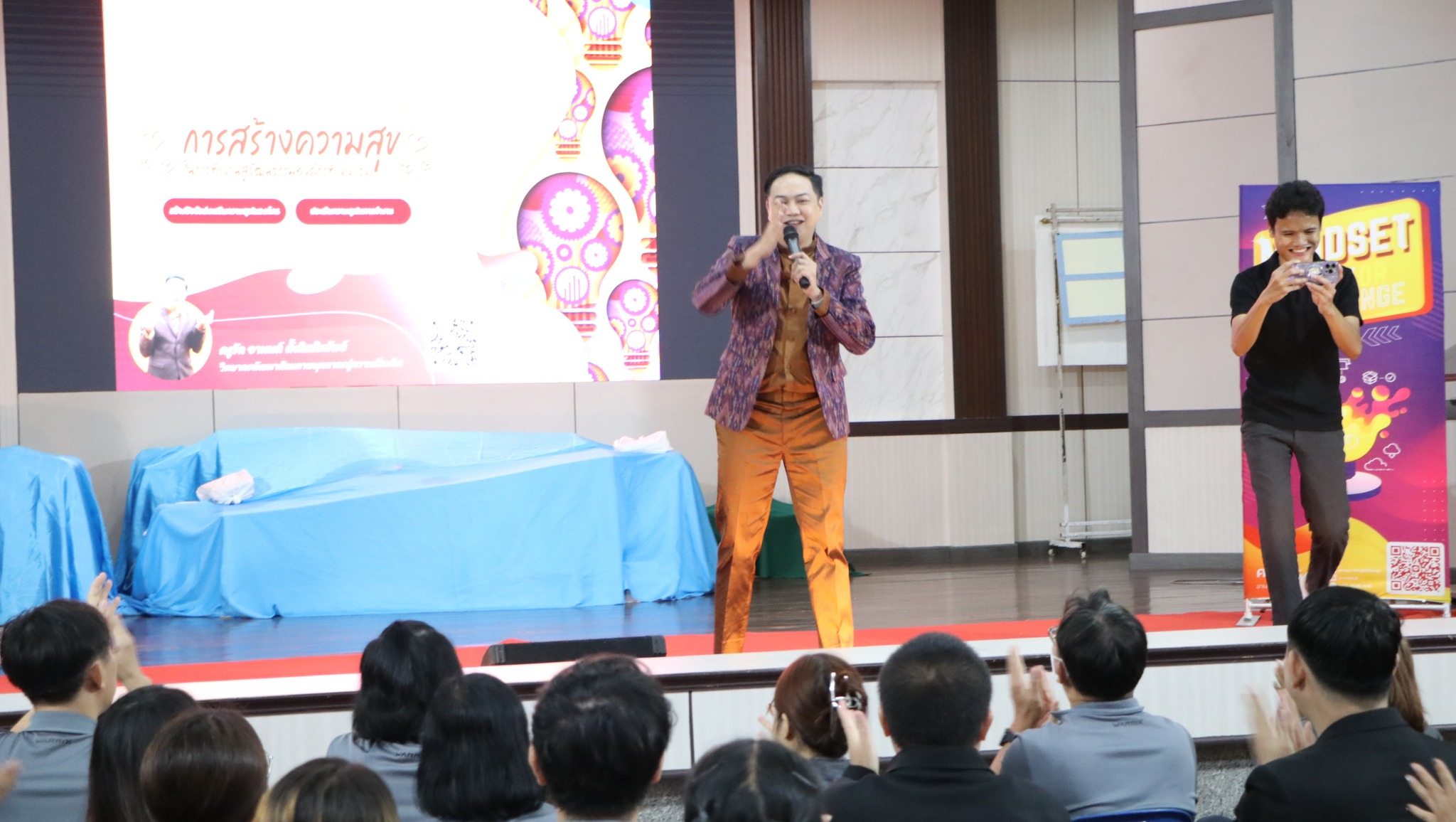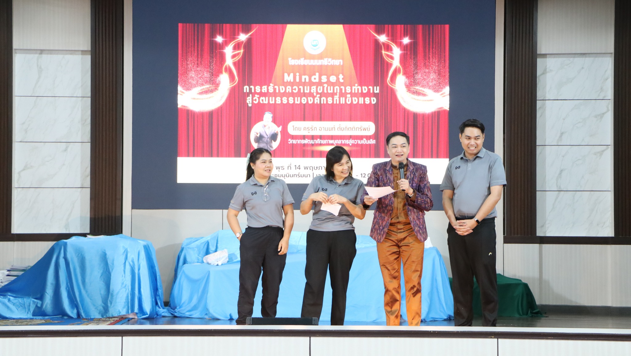 วันพุธที่ 14 พฤษภาคม 2568 นางณัฐพัชร์ ศิริเสถียร ผู้อำนวยการโรงเรียนนนทรีวิทยา ได้มอบหมายให้กลุ่มบริหารงานบุคคล นำโดย นายสิริพัฒน์ ทีฆะสุข รองผู้อำนวยการโรงเรียนนนทรีวิทยา ได้จัดการอบรมเชิงปฏิบัติการการอบรม “Mindset การสร้างความสุขในการทำงานสู่วัฒนธรรมองค์กรที่แข็งแรง” ณ หอประชุมมุนินทร์มนา โรงเรียนนนทรีวิทยา โดยได้รับเกียรติจาก นายอานนท์ ตั้งกิตติทรัพย์ วิทยากรจากสำนักงานคณะกรรมการการศึกษาขั้นพื้นฐาน เป็นวิทยากรให้ความรู้โดยมีวัตถุประสงค์เพื่อเสริมสร้างแนวคิดเชิงบวกในการทำงานให้กับครูและบุคลากรสามารถปรับตัวต่อการเปลี่ยนแปลงมีแรงจูงใจในการทำงาน และสร้างความสุขทั้งต่อตนเองและเพื่อนร่วมงาน ซึ่งจะนำไปสู่การสร้างวัฒนธรรมองค์กรที่เข้มแข็ง ยั่งยืน
