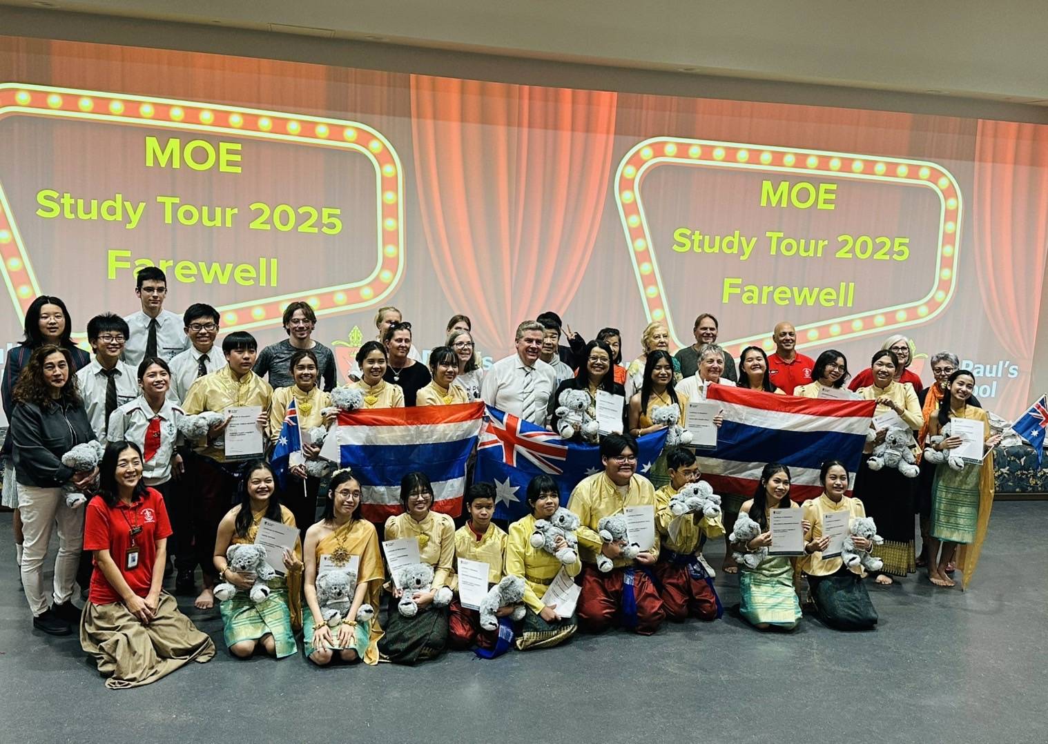วันอังคารที่ 13 พฤษภาคม 2568 คณะผู้บริหารและคณะครู นำโดย นางณัฐพัชร์ ศิริเสถียร ผู้อำนวยการโรงเรียนนนทรีวิทยา ร่วมต้อนรับ เด็กชายกิตติพศ ยังสงบสุข และ เด็กชายชโยดม กุลอมรกานต์ ตัวแทนนักเรียน ห้องเรียนพิเศษวิทยาศาสตร์-คณิตศาสตร์ (Gifted) ม.1/3 เข้าร่วมโครงการแลกเปลี่ยนทางการศึกษาและวัฒนธรรม ระหว่างสำนักงานคณะกรรมการการศึกษาขั้นพื้นฐาน และองค์กรการศึกษาและฝึกอบรมจากเมืองโกลด์โคสต์ เครือรัฐออสเตรเลีย ประจำปี 2567 ระยะเวลา 2 สัปดาห์ ณ สนามบินสุวรรณภูมิ อย่างอบอุ่น
