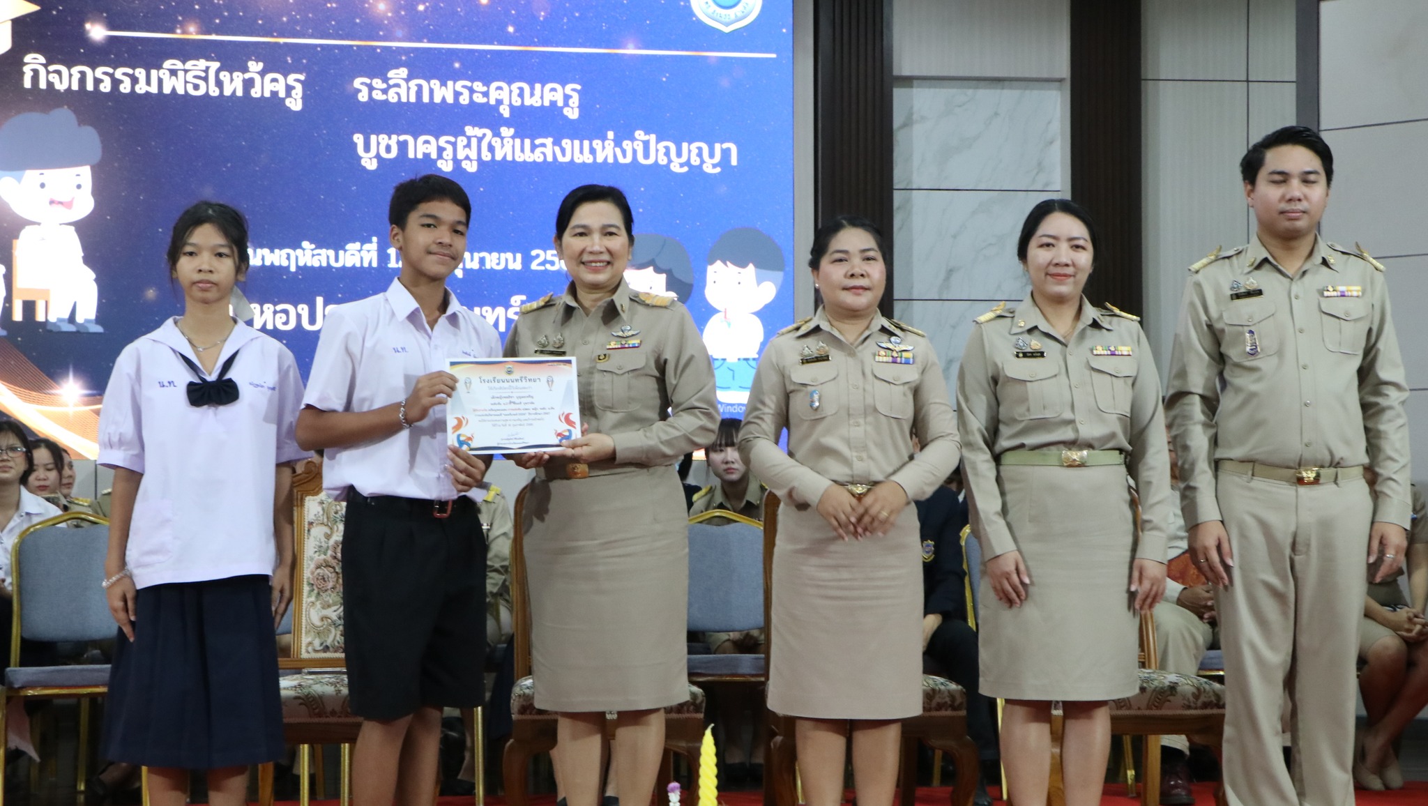 วันพฤหัสบดีที่ 12 มิถุนายน 2568 นางณัฐพัชร์ ศิริเสถียร ผู้อำนวยการโรงเรียนนนทรีวิทยา ได้มอบหมายให้กลุ่มบริหารงานบุคคล(กลุ่มงานกิจการนักเรียน) นำโดย นางสาวนันท์นภัส จำปารัตน์ รองผู้อำนวยการโรงเรียนนนทรีวิทยา ได้จัดพิธีไหว้ครู ประจำปีการศึกษา 2568 ณ หอประชุมมุนินทร์มนา โรงเรียนนนทรีวิทยา โดยมี นางณัฐพัชร์ ศิริเสถียร ผู้อำนวยการโรงเรียนนนทรีวิทยา เป็นประธานในพิธี พร้อมด้วยผู้บริหาร ครูและนักเรียนร่วมพิธี โดยมีพิธีมอบพานไหว้ครู คารวะคณะผู้บริหาร ครูทุกท่านโดยตัวแทนนักเรียนและนิสิตฝึกประสบการณ์วิชาชีพครู รวมทั้งการมอบเกียรติบัตรประกวดพานไหว้ครูให้กับห้องเรียนที่ได้รับรางวัล กิจกรรมมีวัตถุประสงค์เพื่อการแสดงความกตัญญูกตเวทีและความเคารพต่อครูรวมทั้งสร้างสัมพันธ์ระหว่างครูและนักเรียนให้เกิดความรู้สึกผูกพันใกล้ชิด