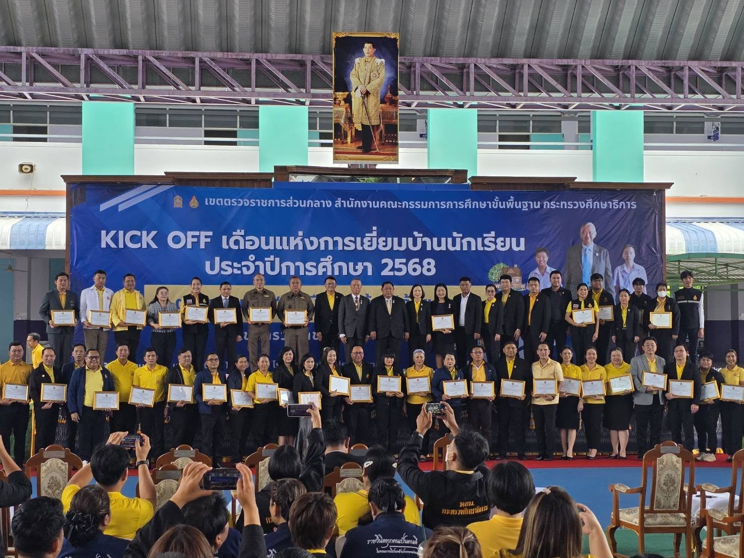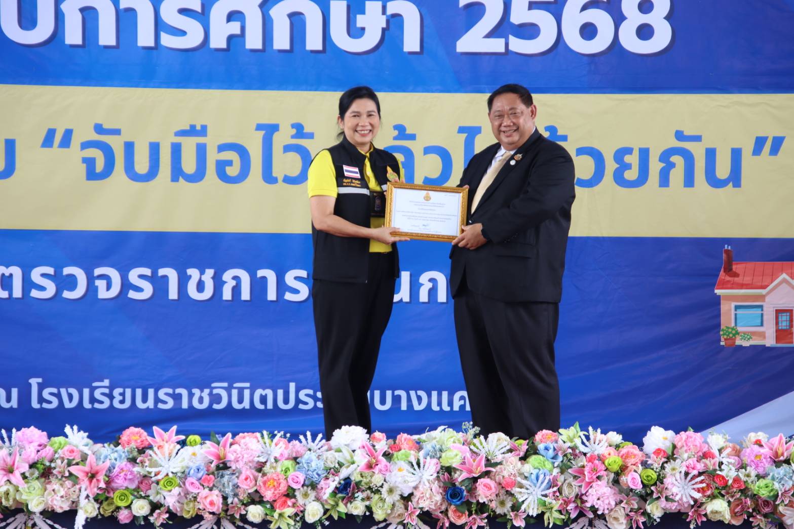 วันศุกร์ที่ 13 มิถุนายน 2568 นางณัฐพัชร์ ศิริเสถียร ผู้อำนวยการโรงเรียนนนทรีวิทยา พร้อมด้วยคณะผู้บริหารและคณะครู ทีมพสน.โรงเรียนนนทรีวิทยา ได้เข้าร่วมกิจกรรม Kick off เดือนแห่งการเยี่ยมบ้านนักเรียน ประจำปีการศึกษา 2568 ตามนโยบาย “จับมือไว้ แล้วไปด้วยกัน” ณ ห้องประชุม 1 โรงเรียนราชวินิตประถมบางแค โดยได้รับเกียรติจาก ดร.ธีร์ ภวังคนันท์ รองเลขาธิการ คณะกรรมการการศึกษาขั้นพื้นฐาน เป็นประธานในพิธี พร้อมด้วย ดร.อุดม พรมพันธ์ใจ ผู้แทนรัฐมนตรีว่าการกระทรวงศึกษาธิการ ได้มอบนโยบายด้านการเสริมสร้างความปลอดภัยของสถานศึกษา ระบบการดูแลช่วยเหลือนักเรียน ในการนี้ นางณัฐพัชร์ ศิริเสถียร ผู้อำนวยการโรงเรียนนนทรีวิทยา ได้รับมอบเกียรติบัตรสถานศึกษาที่ส่งเสริม สนับสนุนการดำเนินงานระบบดูแลช่วยเหลือผู้เรียนดีเด่น จาก ดร.ธีร์ ภวังคนันท์ รองเลขาธิการคณะกรรมการการศึกษาขั้นพื้นฐาน โดยพิธีดังกล่าวจัดขึ้นเพื่อให้นักเรียนได้รับการคุ้มครอง ดูแล ให้มีความปลอดภัยทั้งร่างกาย จิตใจ และสังคม รวมทั้งสร้างขวัญกำลังใจให้กับผู้ปกครองและนักเรียนในการเข้าเรียนในสถานศึกษา
