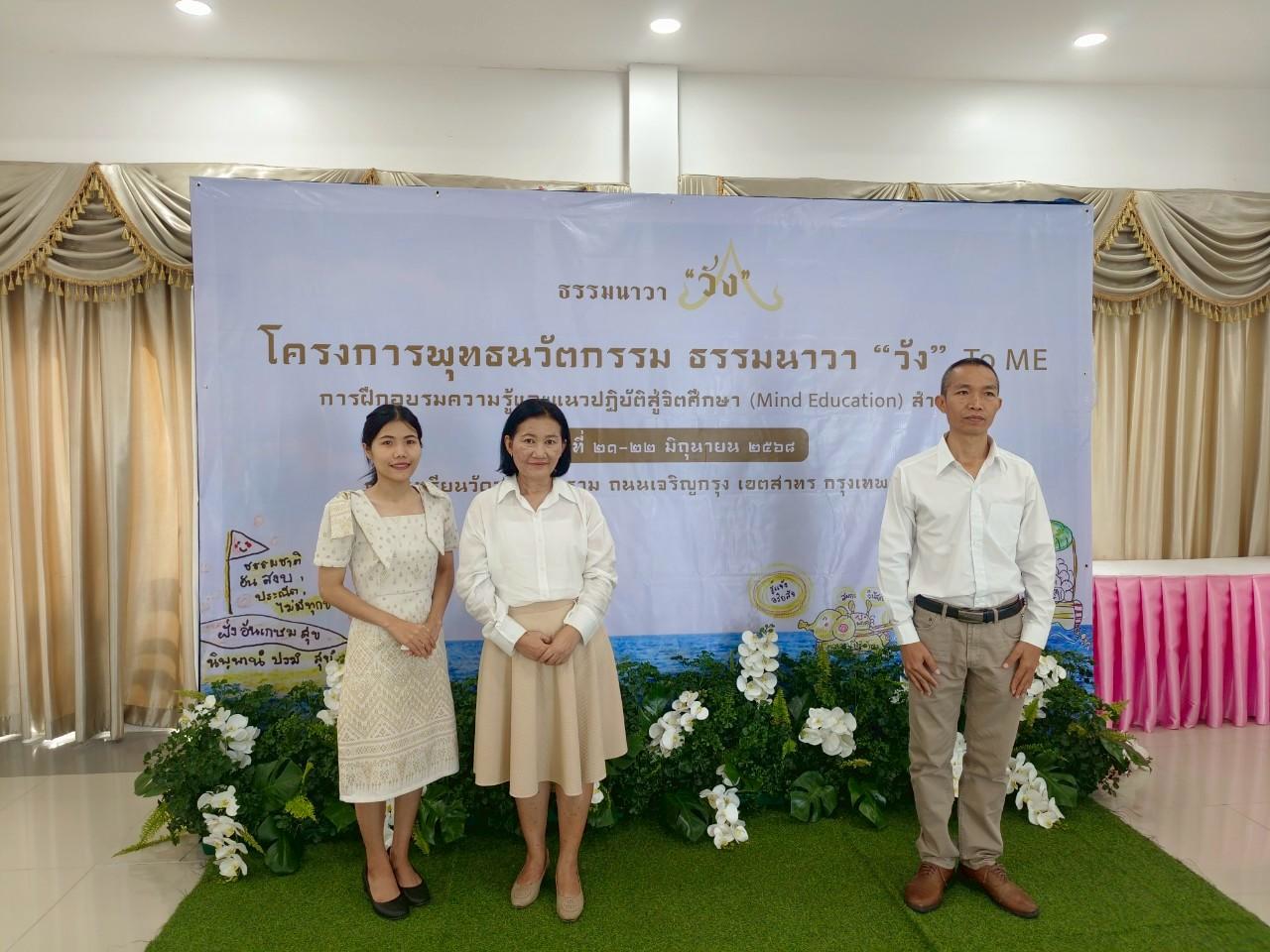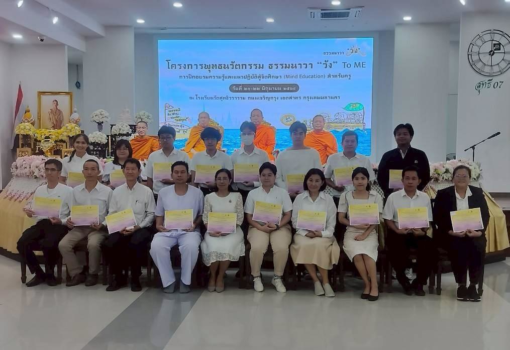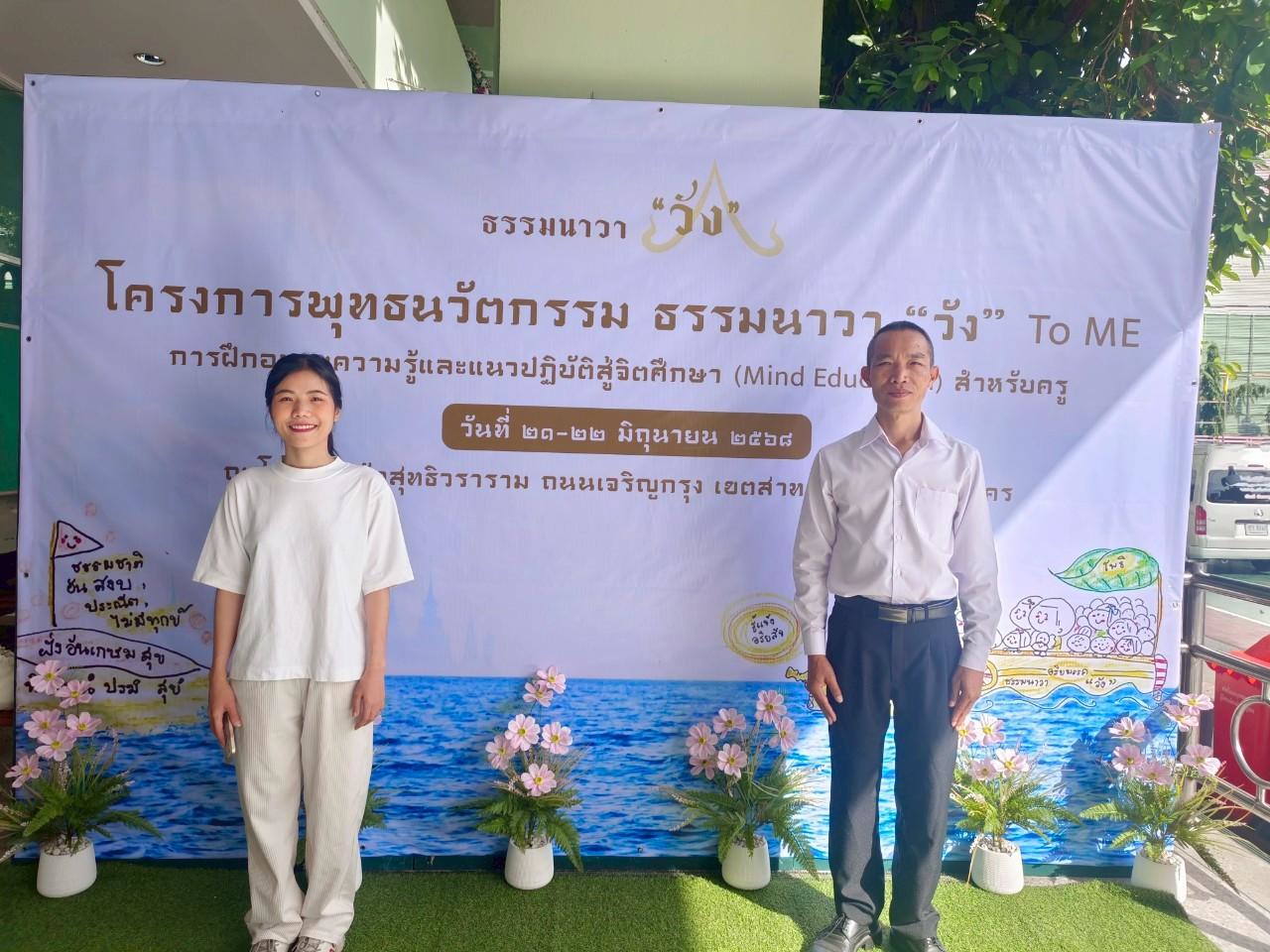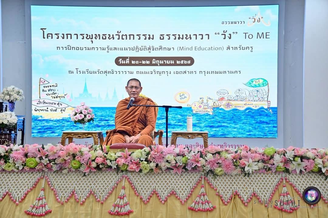 วันที่ 21-22 มิถุนายน 2568 นางณัฐพัชร์ ศิริเสถียร ผู้อำนวยการโรงเรียนนนทรีวิทยา ได้มอบหมายให้ นางธิดา หวังสุข รองผู้อำนวยการโรงเรียนนนทรีวิทยา พร้อมด้วยคณะครูเข้าร่วมการอบรมโครงการพุทธนวัตกรรม ธรรมนาวา “วัง” To ME ณ ห้องประชุมศตวัชรบุษกร ชั้น 10 อาคารเฉลิมพระเกียรติ ร.9 โรงเรียนวัดสุทธิวราราม โดยมี พระราชญาณวัชรชิโนภาส เป็นประธานในพิธีเปิดและให้เกียรติบรรยายพิเศษ พร้อมด้วย ดร.นภาพร พงษ์ขัน ผู้อำนวยการสำนักงานเขตพื้นที่การศึกษามัธยมศึกษากรุงเทพมหานคร เขต 2 ดร.บัญชา ปลื้มอารมย์ และดร.ขวัญสุดา วงษ์แหยม รองผู้อำนวยการสำนักงานเขตพื้นที่การศึกษามัธยมศึกษากรุงเทพมหานคร เขต 2 เข้าร่วมการอบรม โดยมีวัตถุประสงค์เพื่อส่งเสริมและพัฒนาองค์ความรู้ทางด้าน “ธรรมนาวา วัง” อันเป็นแนวทางที่เชื่อมโยงหลักธรรมทางพระพุทธศาสนากับการจัดการศึกษาแบบ “จิตศึกษา” (Mind Education : ME) เพื่อสร้างการเรียนรู้ที่ลึกซึ้ง