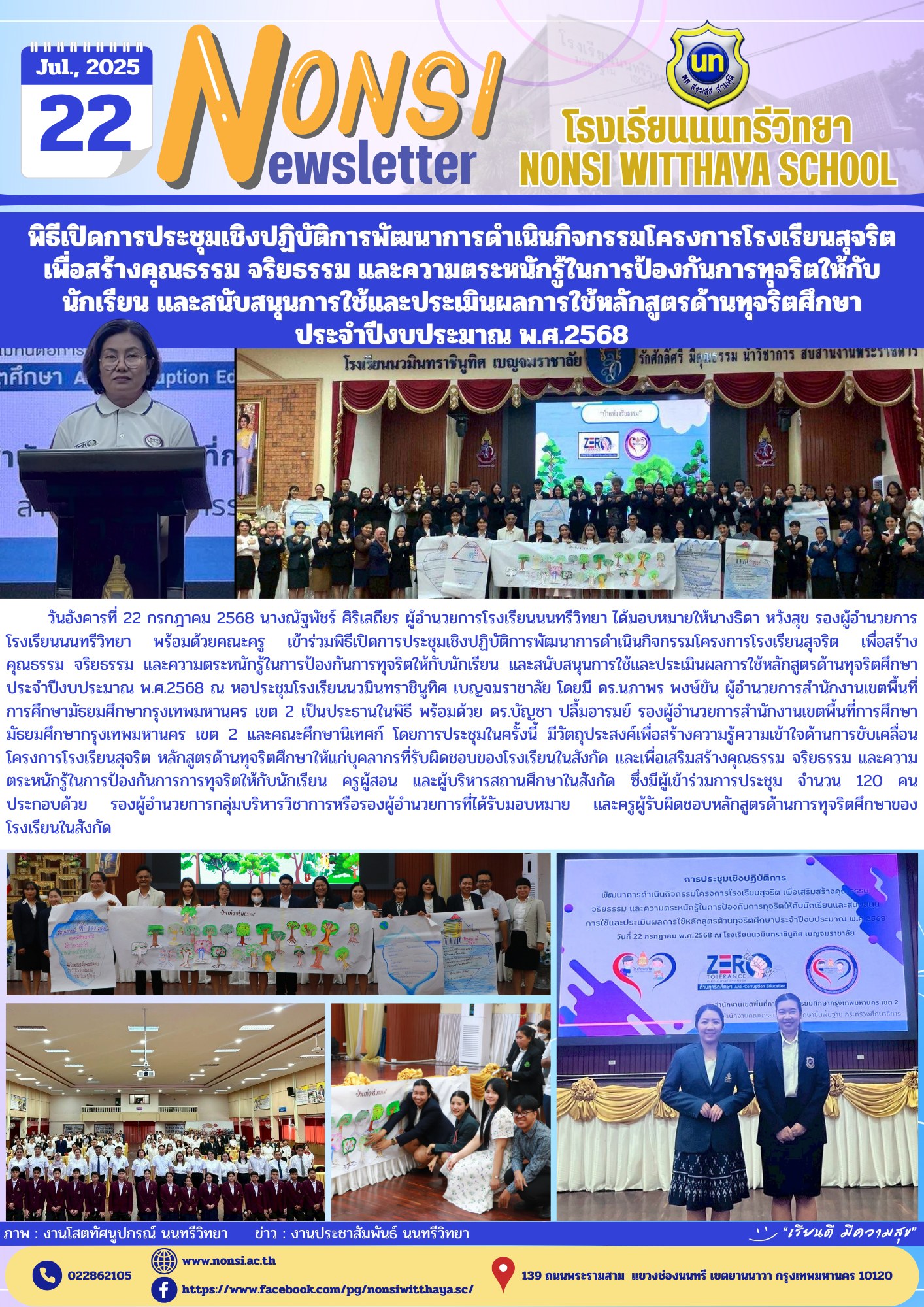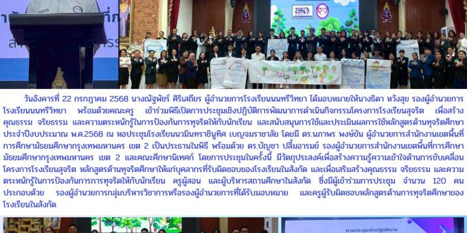 Posted in ข่าวประชาสัมพันธ์, ภาพกิจกรรม พิธีเปิดการประชุมเชิงปฏิบัติการพัฒนาการดำเนินกิจกรรมโครงการโรงเรียนสุจริต เพื่อสร้างคุณธรรม จริยธรรม และความตระหนักรู้ในการป้องกันการทุจริตให้กับนักเรียน และสนับสนุนการใช้และประเมินผลการใช้หลักสูตรด้านทุจริตศึกษา ประจำปีงบประมาณ พ.ศ.2568 Admin กรกฎาคม 25, 2025 Leave a comment Author: Admin