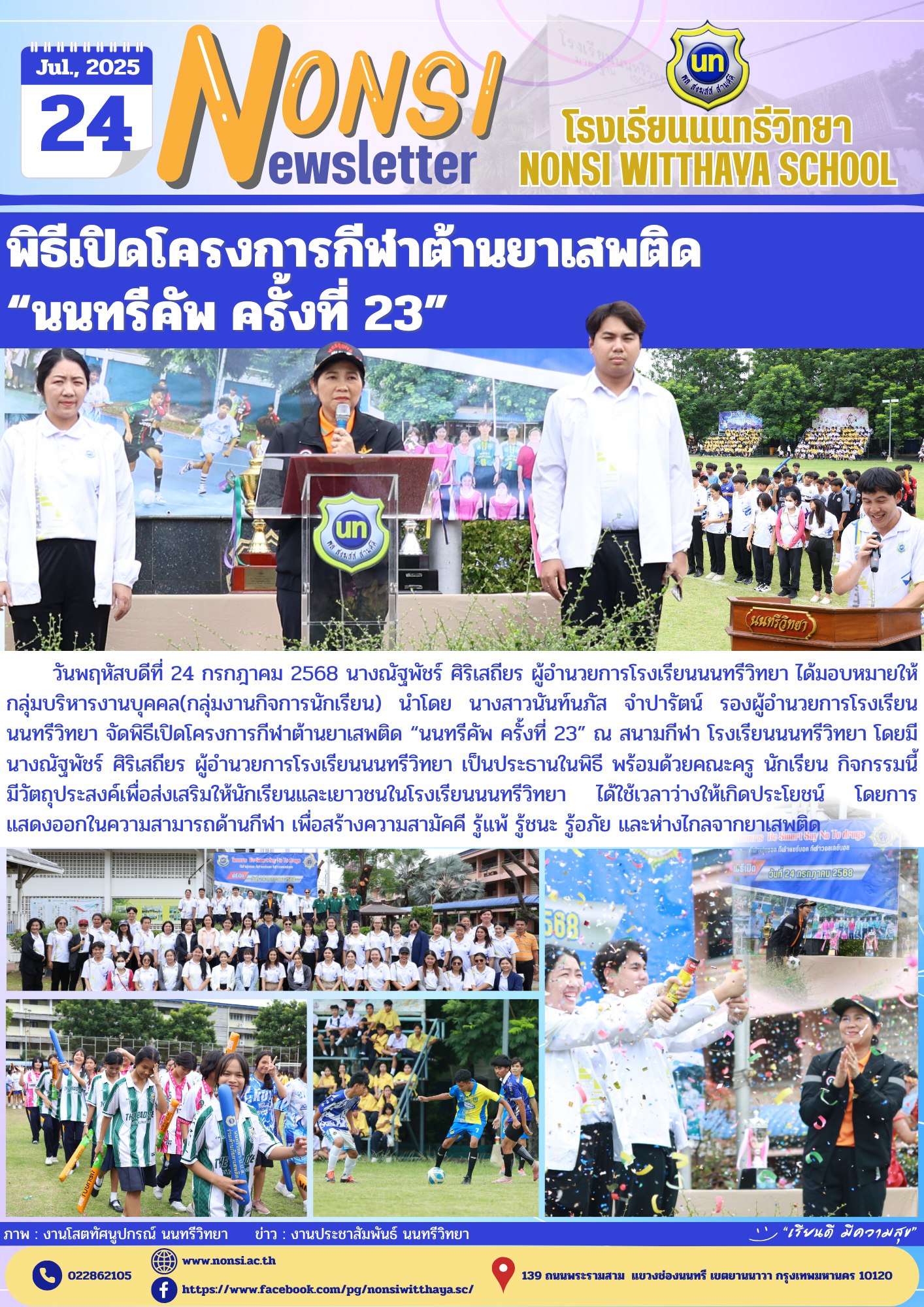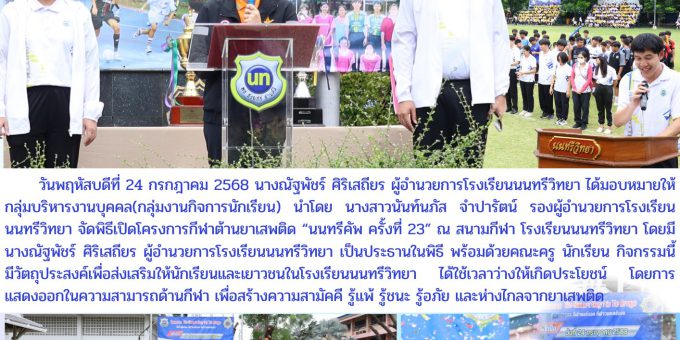 Posted in ข่าวประชาสัมพันธ์, ภาพกิจกรรม พิธีเปิดโครงการกีฬาต้านยาเสพติด “นนทรีคัพ ครั้งที่ 23” Admin กรกฎาคม 25, 2025 Leave a comment รูปภาพเพิ่มเติม คลิก : https://drive.google.com/drive/folders/1PV37-JUvbVAC5fqi7Lw79s1Jr9anZCpY?usp=sharing Author: Admin