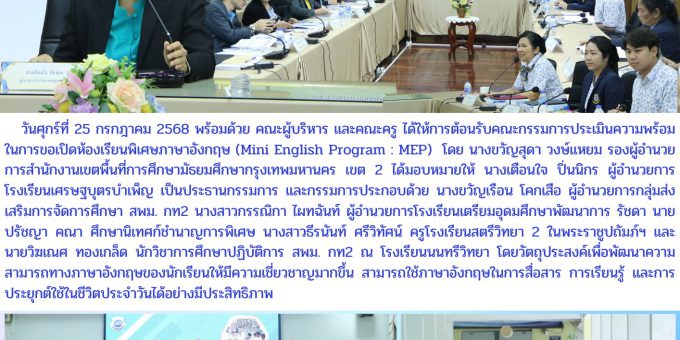 Posted in ข่าวประชาสัมพันธ์, ภาพกิจกรรม การประเมินเปิดห้องเรียนพิเศษภาษาอังกฤษ (Mini English Program : MEP) Admin กรกฎาคม 27, 2025 Leave a comment Author: Admin