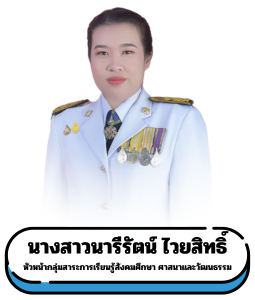 กลุ่มสาระฯสังคมศึกษา ศาสนาและวัฒนธรรม นางนิษฐา สุทธิพงษ์ นางสิริรัชต์ สุขเจริญ นายสรชัย จักษุมา นางสาวธีรญาดา สุทธิ นางสาวรัชนี คุ้มสวัสดิ์ นางสาวจินตนา ปรี่กลาง